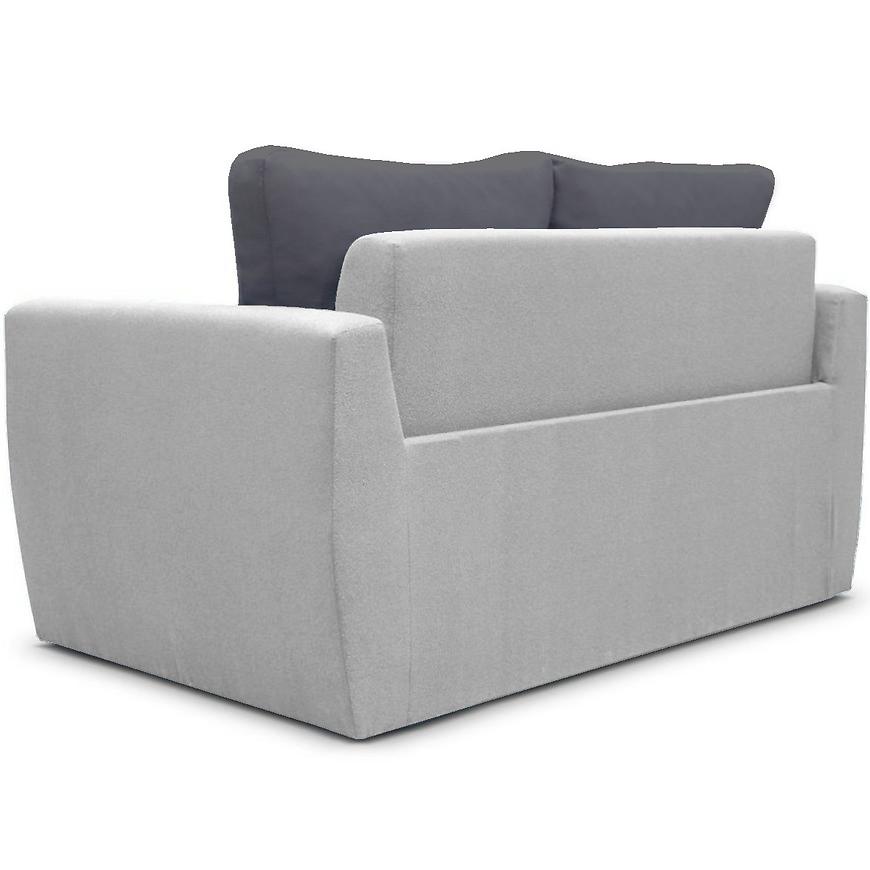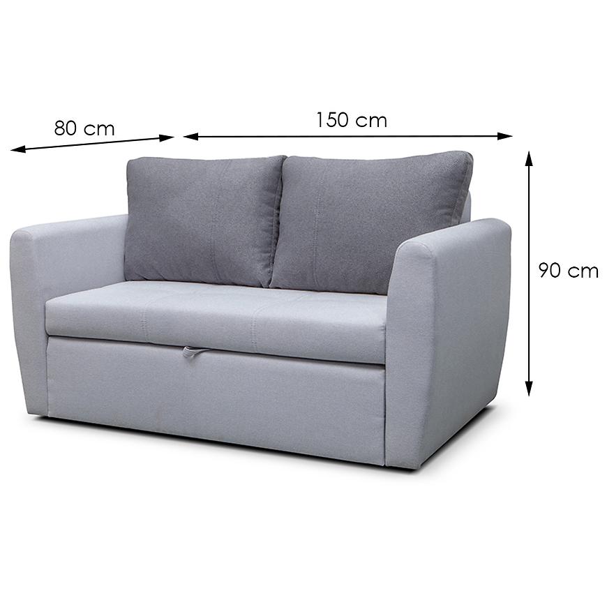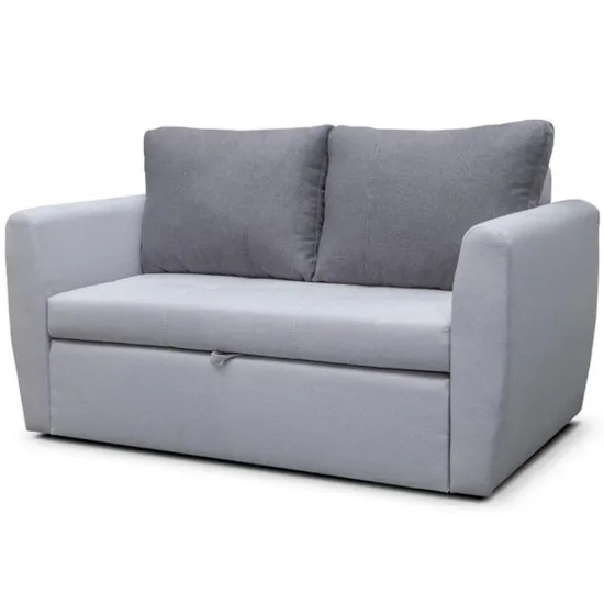 Sofa Bella 120 Alfa 17+19 to funkcjonalny mebel z funkcją spania o powierzchni 188x122 cm. Wyposażona w schowek na pościel, mechanizm rozkładania automat i wypełnienie z pianki. Tapicerowana w eleganckiej szarej tkaninie, bez nóg, z uniwersalną orientacją i kompletem poduszek, łączy wygodę z praktycznością na co dzień.