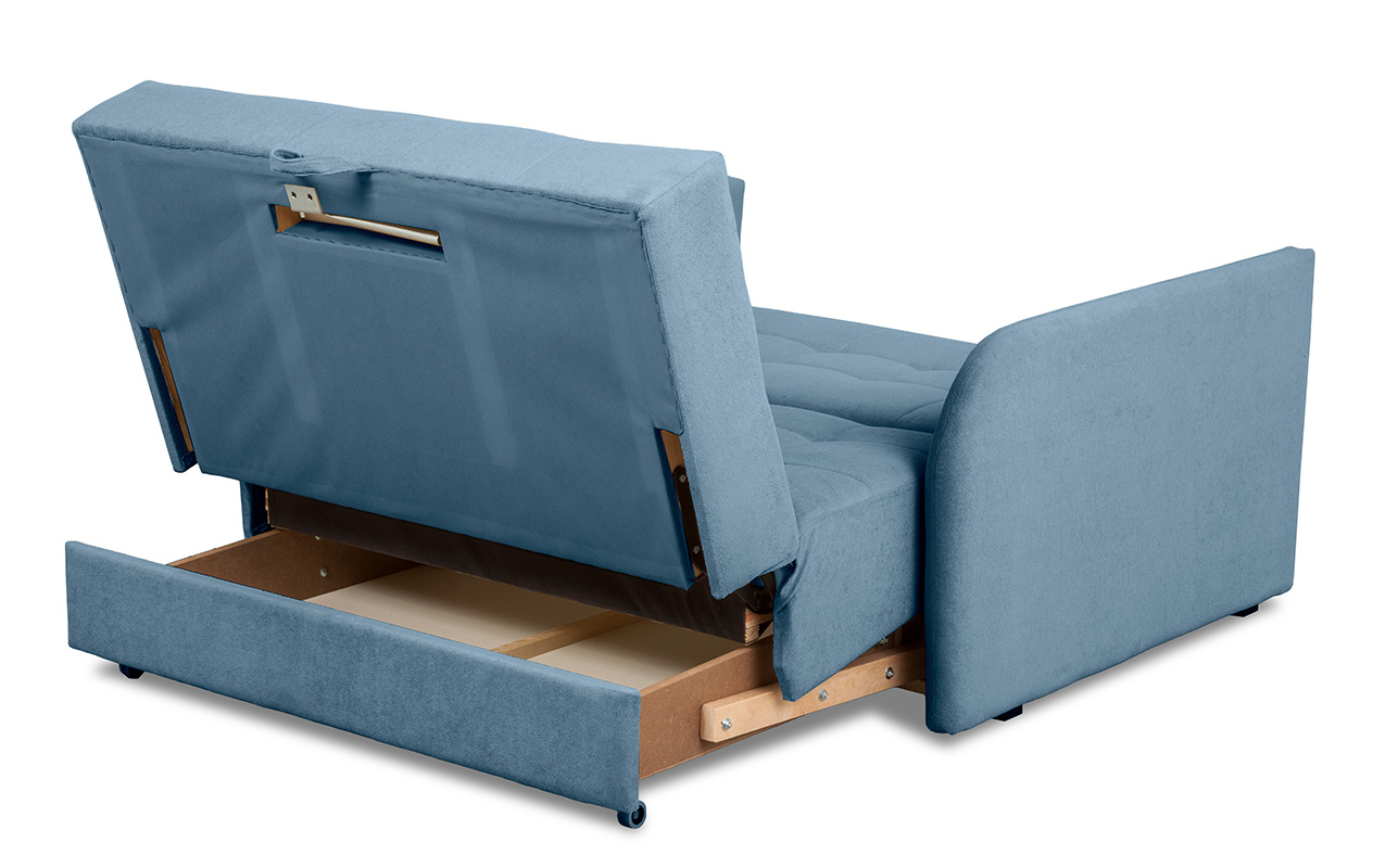 Dodatkowym atutem sofy Iga jest pojemnik na pościel. To niezwykle praktyczne rozwiązanie pozwala na przechowywanie pościeli, koców czy poduszek, dzięki czemu w łatwy sposób można utrzymać porządek w pomieszczeniu. Pojemnik jest przestronny i łatwo dostępny, co podnosi funkcjonalność mebla.