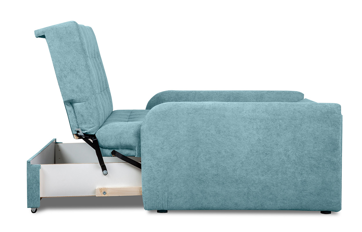 Siedzisko wykonano z połączenia sprężyny bonell oraz pianki, co zapewnia komfort użytkowania – zarówno podczas codziennego wypoczynku, jak i snu. Sofa została wyposażona w funkcję spania – praktyczny system rozkładania typu wózek oraz mechanizm click-clack umożliwiają szybkie i łatwe przekształcenie mebla w łóżko o powierzchni 106 × 193 cm.