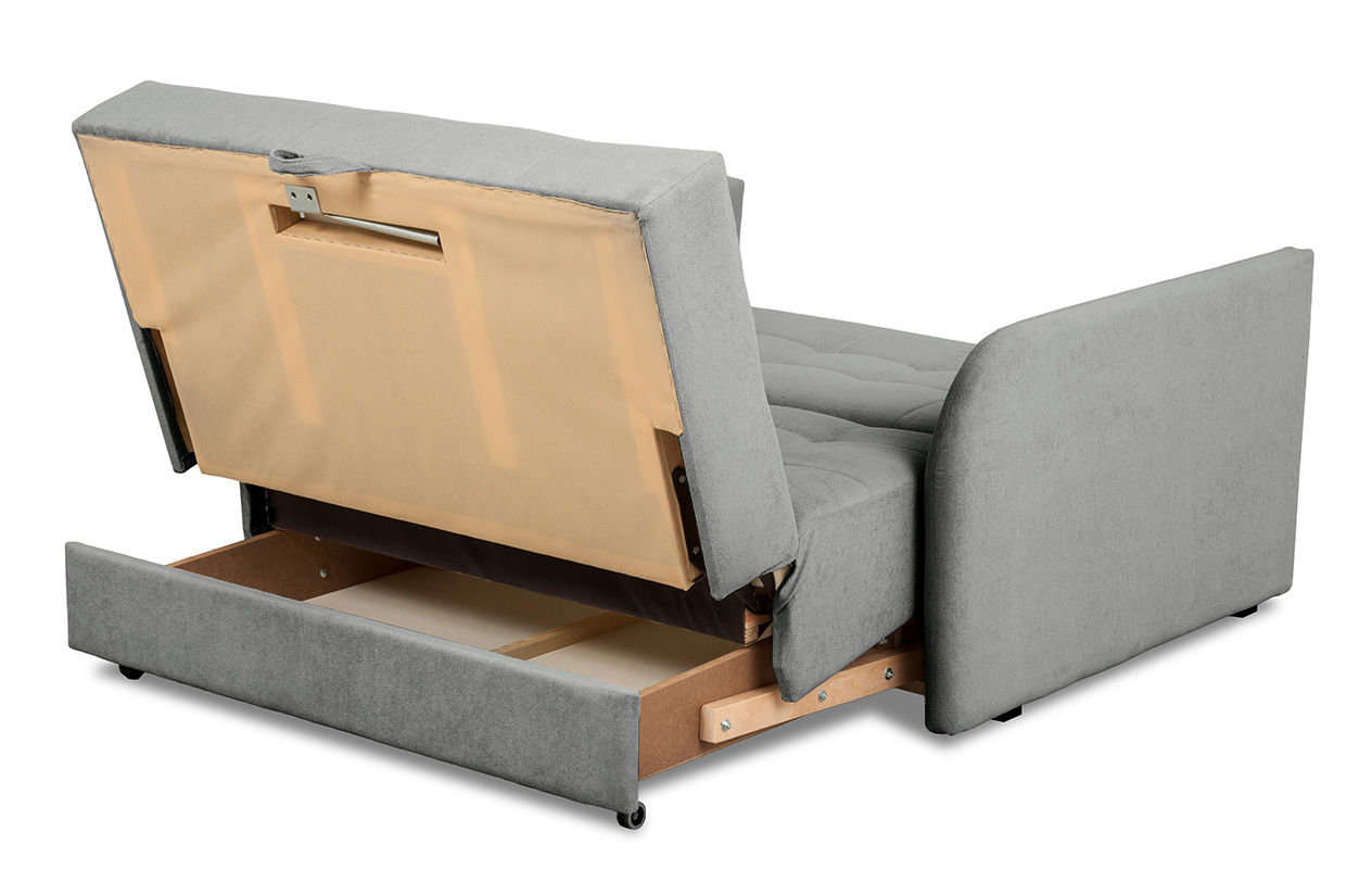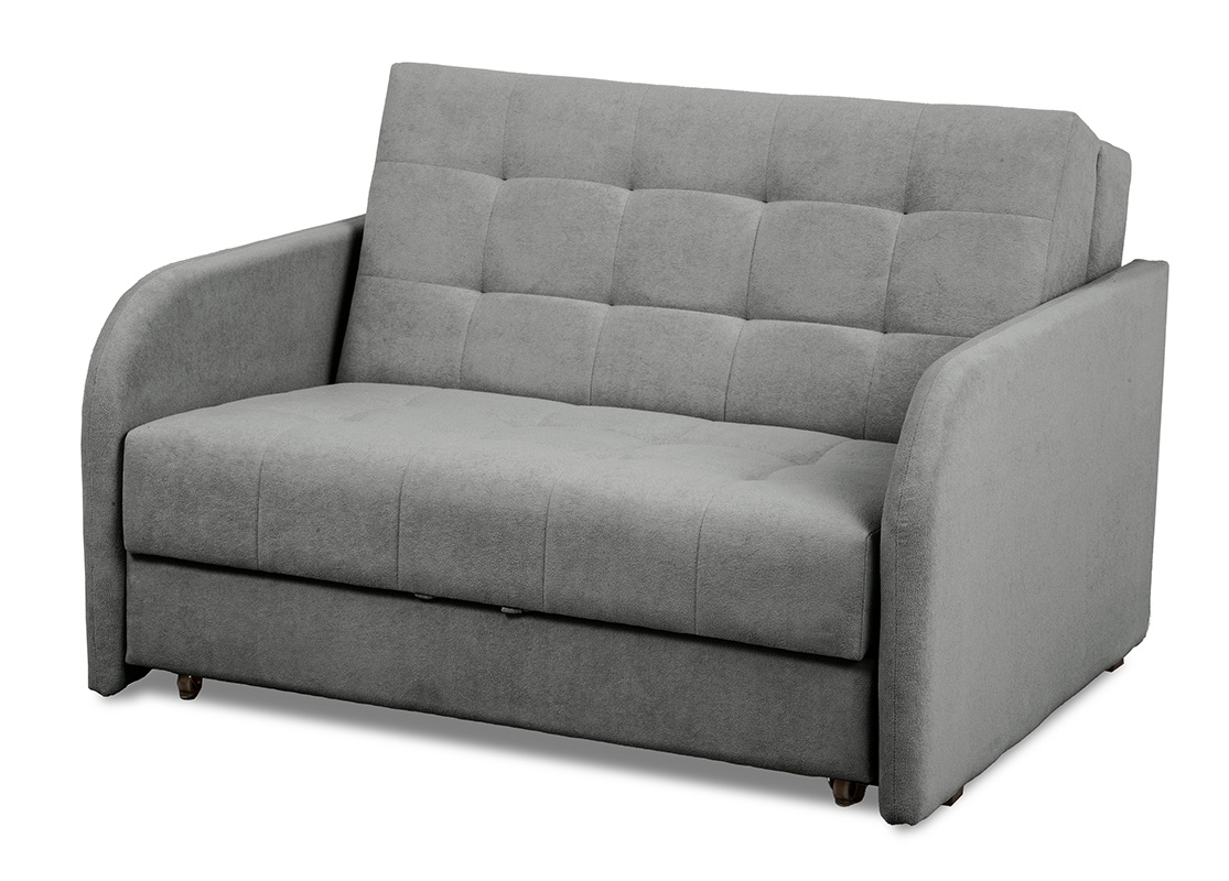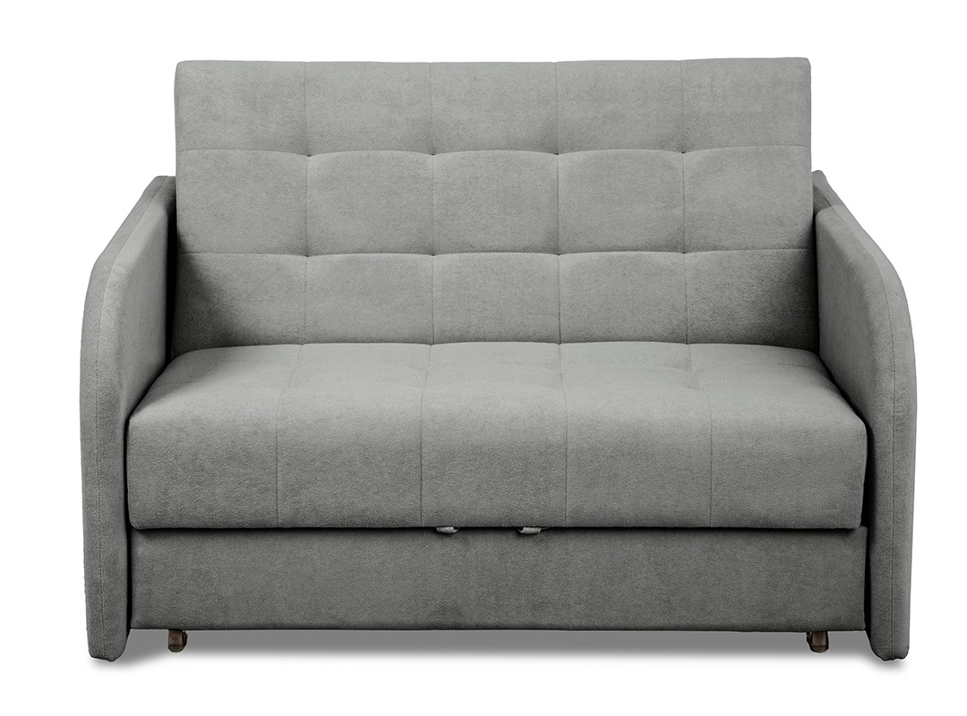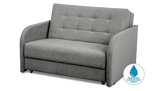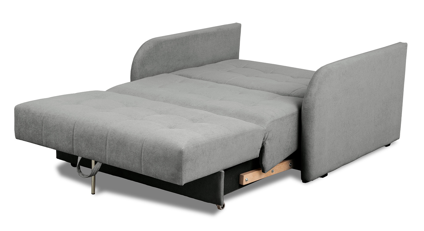 Sofa dwuosobowa Mika to mebel wypoczynkowy z funkcją spania, pojemnikiem na pościel i mechanizmem ułatwiającym rozkładanie. Sofa wykonana w tkaninie Velo w kolorze jasny popiel, wyprodukowana w technologii Nano Block (tanina ma ograniczone wchłanianie rozlanych płynów). W siedzisku oraz oparciu mebla zastosowano sprężyny bonell oraz pianke T25, co znacznie podnosi komfort wypoczynku. Sposób rozkładania wózek. Po rozłożeniu sofy otrzymujemy powierzchnię spania o wymiarach 112x185 cm. Jako element dekoracyjny zostały zastosowane ozdobne przeszycia i wciągi na siedzisku i oparciu sofy. Tył sofy częściowo tapicerowany tkaniną.