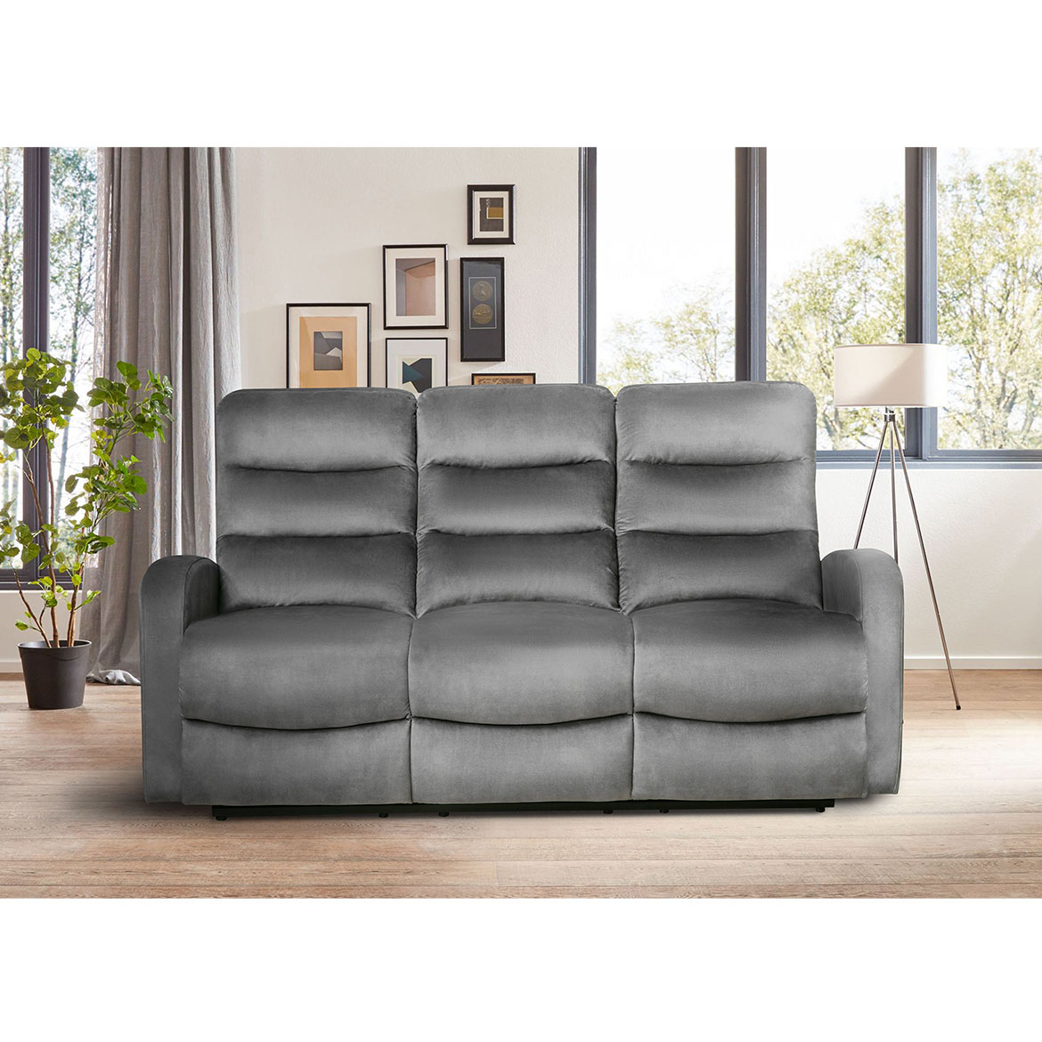 Jej szara tapicerka wykonana z miękkiej tkaniny aksamitnej dodaje przytulności i klasy. Sprężyna kieszeniowa i falista w połączeniu z pianką wypełniającą siedzisko zapewniają wyjątkową wygodę podczas długotrwałego użytkowania. Regulowane oparcie oraz funkcja relaksu, wsparta mechanizmem automatycznego rozkładania, umożliwiają dostosowanie pozycji siedzenia do swoich preferencji oraz pozwala na pełen relaks po intensywnym dniu. Nogi w kolorze czarnym stanowią solidne i stylowe podstawienie dla sofy, nadając całości elegancki wygląd. Sofa Elena nie tylko prezentuje się imponująco, ale również jest funkcjonalna, dzięki możliwości automatycznego rozkładania.