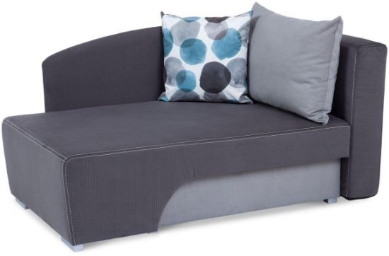Sofa Etro to doskonały wybór dla osób, które chętnie sięgają po nieoczywiste rozwiązania projektowe. Oryginalne wzornictwo wersalki sprawia, że z powodzeniem odgrywa ona wiodącą rolę w aranżacji pokoju dziennego lub sypialni dla gości. Nad walorami wizualnymi kompozycji czuwa spójne połączenie dwóch popielatych odcieni tkaniny obiciowej. Stonowaną kolorystykę przełamuje wzorzysta poduszka ozdobna należąca do wyposażenia mebla oraz niewielkie, drewniane nóżki. Przebywanie na sofie z funkcją spania jest bardzo przyjemne. O wygodę korzystania dbają sprężyny faliste zlokalizowane wewnątrz siedziska, a dodatkowo komfort użytkowania podnosi pianka T28. Powierzchnia do spania sofy Etro wynosi 80 x 199 cm, a w jej wnętrzu znajduje się pojemnik na pościel. Bezproblemowo mieści on wszelkiego rodzaju poduszki, kołdry czy prześcieradła, co ułatwia dbanie o porządek. Mechanizm wspomagający rozkładanie gwarantuje, że każdy poradzi sobie z przygotowaniem miejsca do spania.