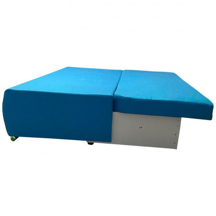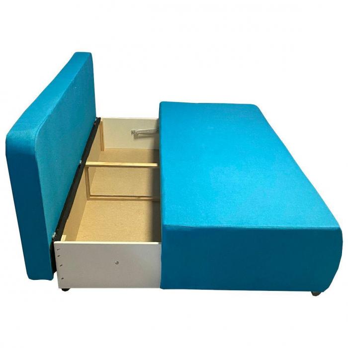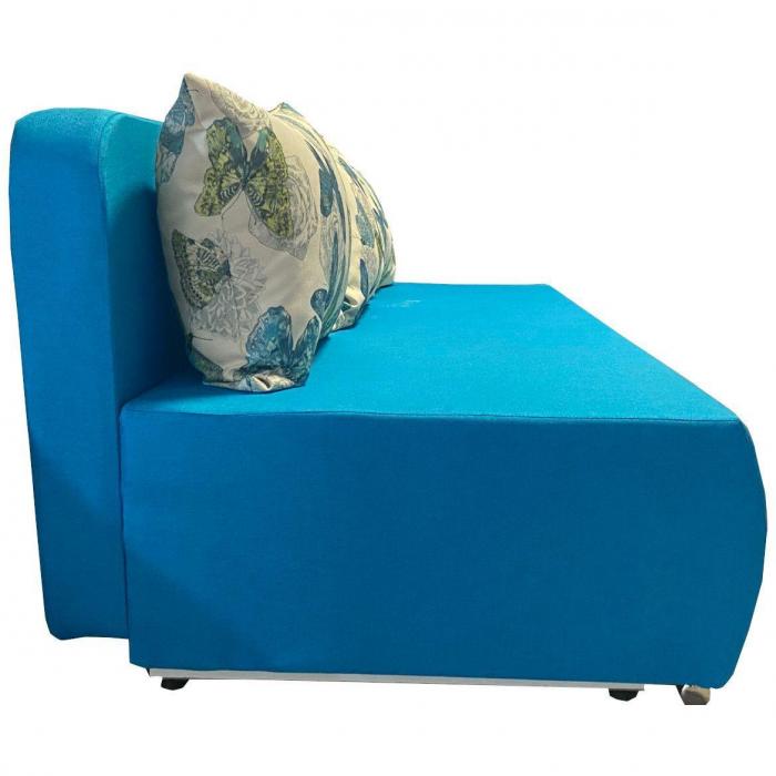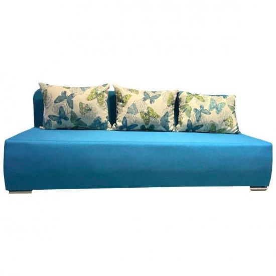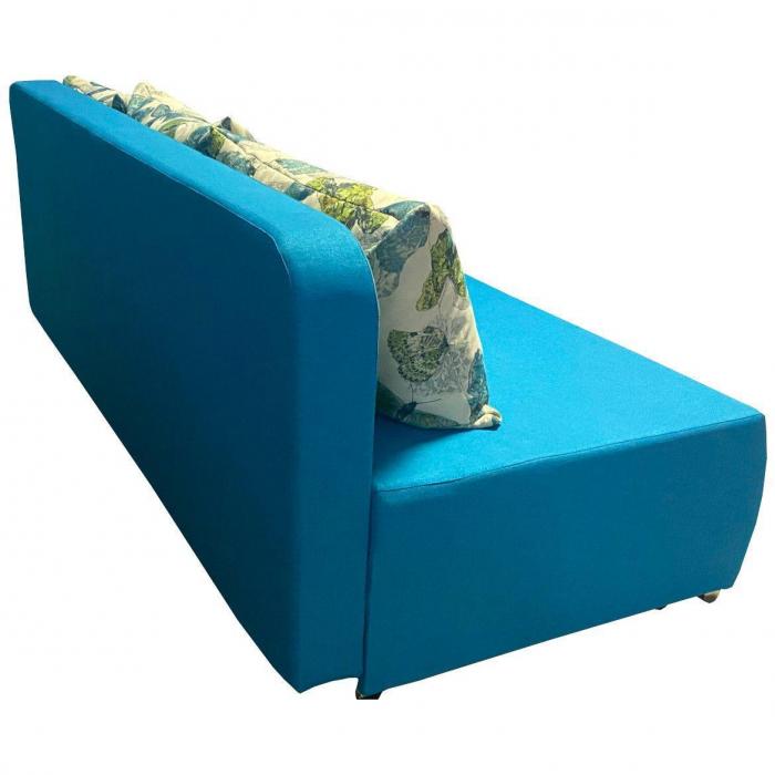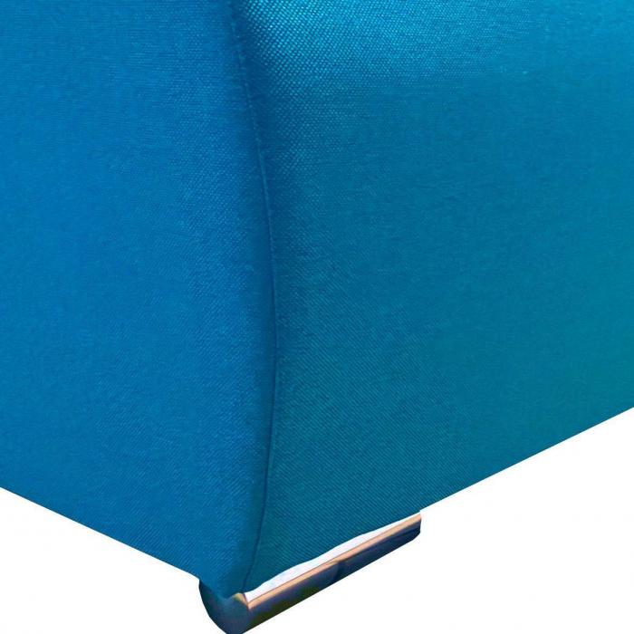 Sofa z serii Fiesta to klasyczna forma oprawiona w niebieską tapicerkę z poduszkami sprawia, że sofa ta doskonale sprawdzi się w salonach i pokojach dziennych, stając się ozdobą wnętrza i charakterystycznym elementem jego wystroju. Ciekawa kolorsytyka nada pomieszczeniu przytulności, dzięki czemu zyskuje ono nowoczesnego i eleganckiego zarazem wyrazu. Po rozłożeniu okazjonalne miejsce do spania o wymiarach 140x190 cm. Szuflada na pościel pozwala na lepsze zagospodarowanie przestrzeni, co jest szczególnie istotne zwłaszcza w małych mieszkaniach, w której możemy przechowywać pościel, poduszki czy dodatkowe koce. Chromowane nóżki są ciekawym elementem wykończeniowym całej Kanapy. Kanapa będzie świetnie wyglądać w salonie czy pokoju dziennym.