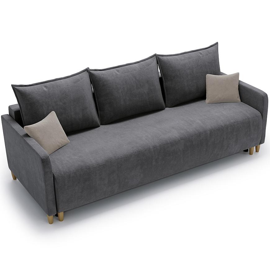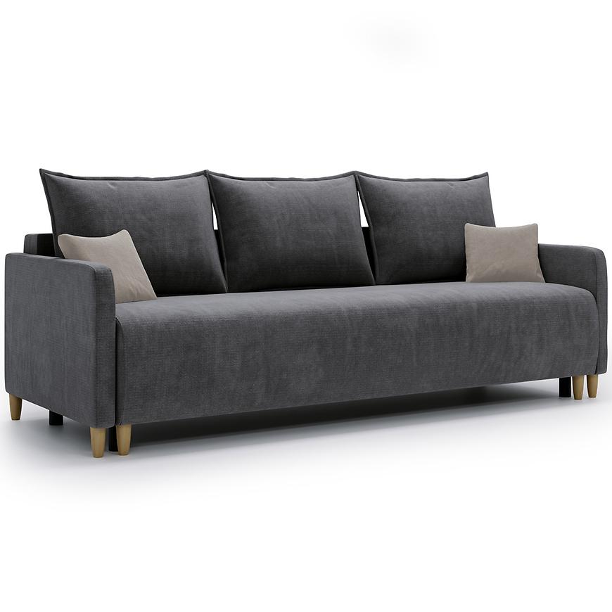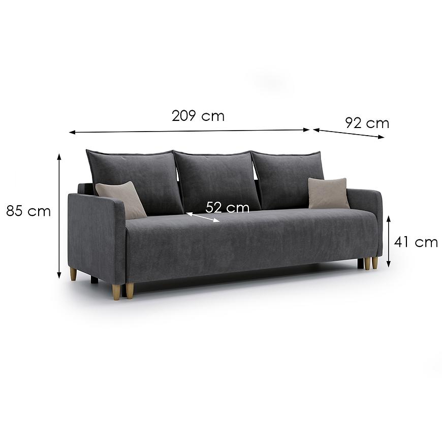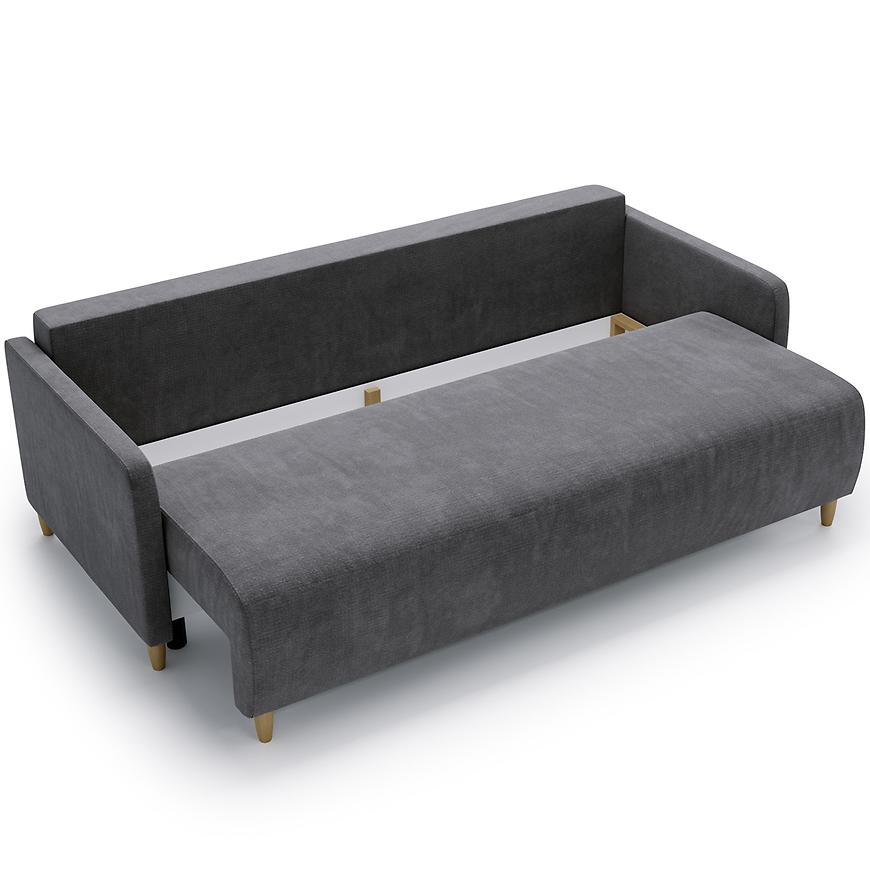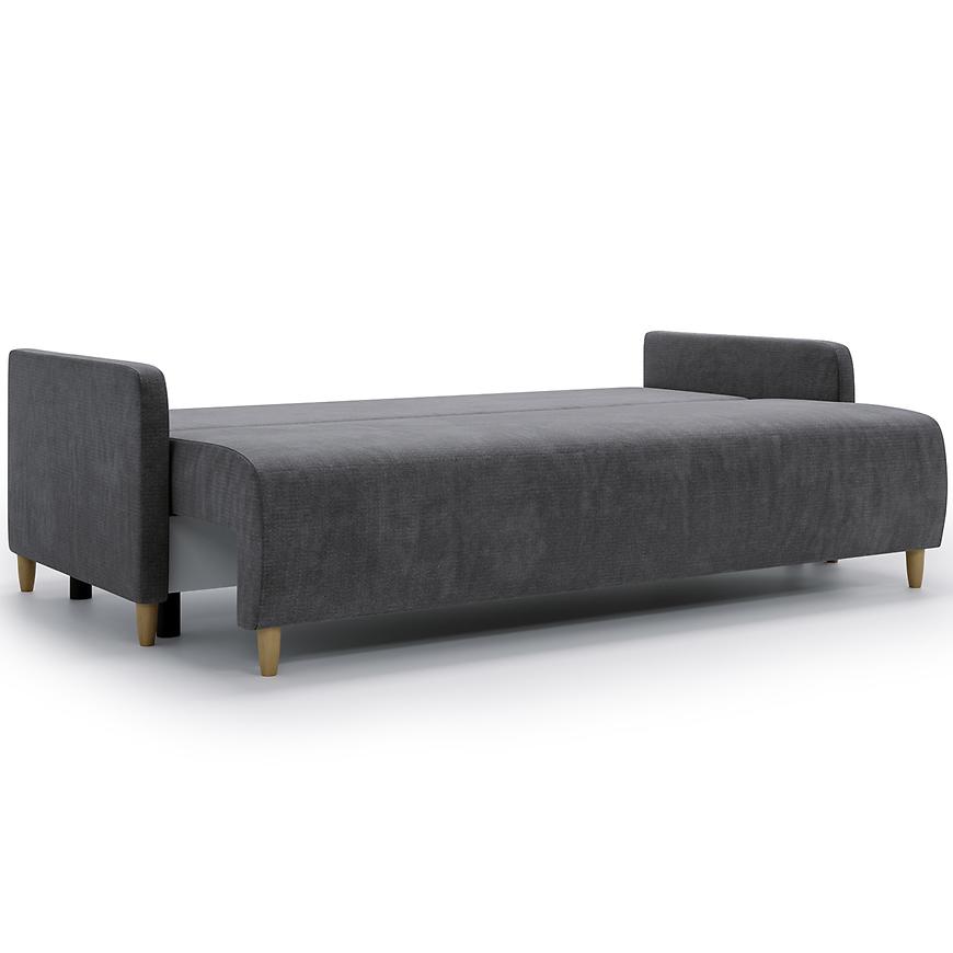 Wbudowany schowek na pościel to praktyczny dodatek, który umożliwia wygodne przechowywanie pościeli i innych akcesoriów, co dodatkowo zwiększa funkcjonalność sofy. Sofa Glory Sierra wyposażona jest w drewniane nogi o naturalnym wybarwieniu, które podkreślają jej skandynawski charakter i dodają jej lekkości oraz elegancji.