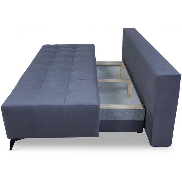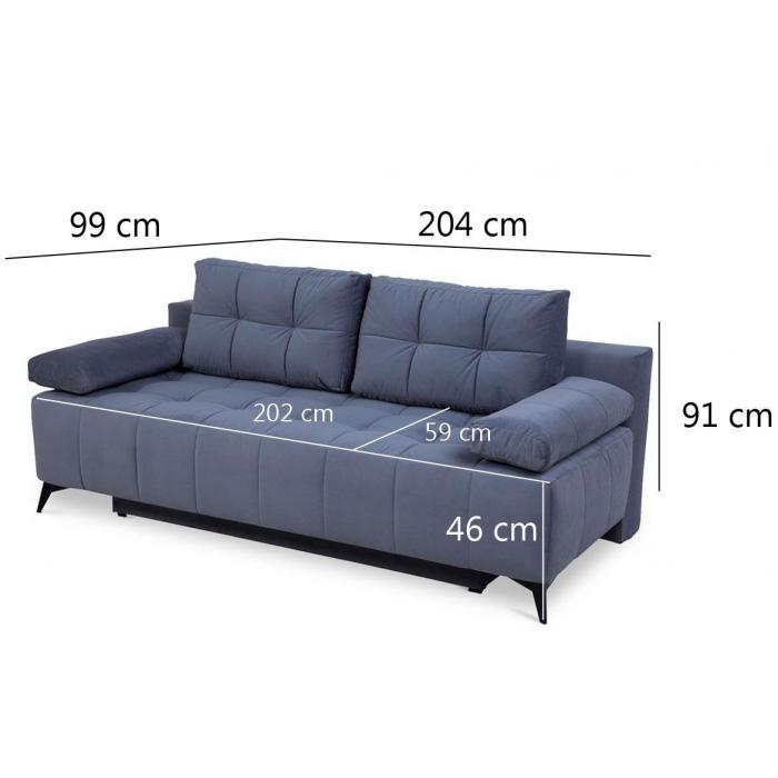 Sofa Imperia wykonana w tkaninie Trinity w kolorze popielatym. Sofa Imperia to wygodna i nowoczesna sofa z pojemnikiem na pościel. Sposób rozkładania DL. Duża powierzchnia spania o wymiarach 150x202 cm. W komplecie sofa posiada dwie stabilne poduszki oparciowe z ozdobnymi przeszyciami oraz dwie poduszki boczne. Jako element dekoracyjny zostały zastosowane wysokie metalowe nóżki oraz pikowania na całej sofie. Sofa Imperia w kolorze granatowym zapewnia wysoki komfort wypoczynku poprzez zastosowanie sprężyn falistych oraz sprężyn bonellowych w siedzisku a w oparciu sprężyny bonell. Sofa na czas transportu pakowana jest w jedną paczkę o wymiarach 202x66x82 cm.