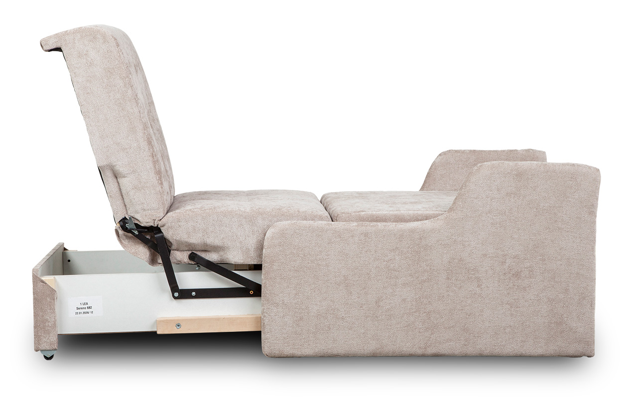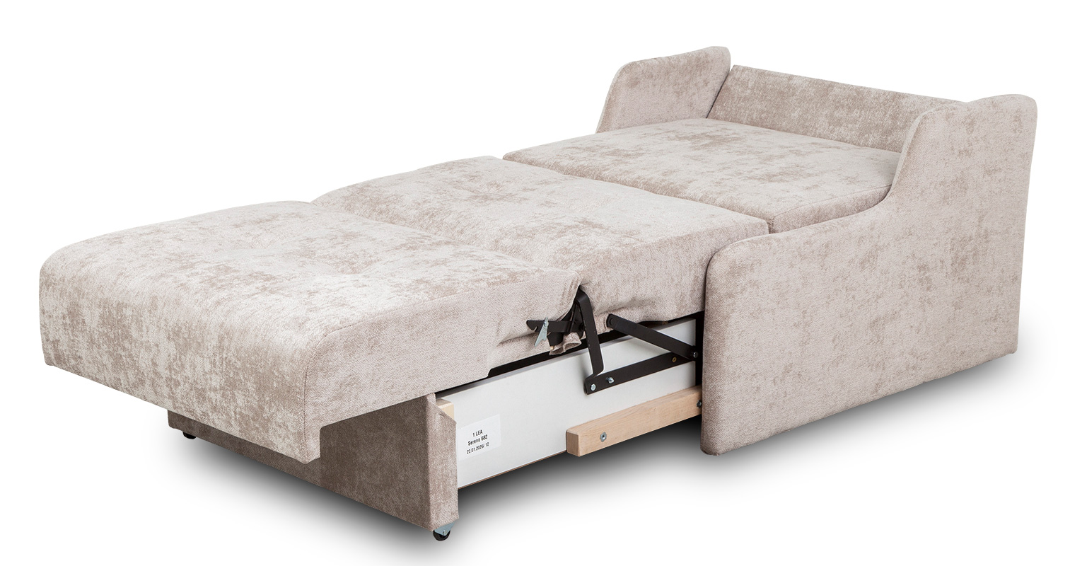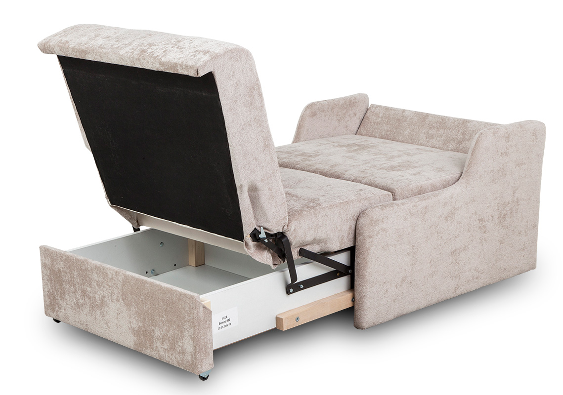 Sofa jednoosobowa Lea to rozwiązanie dla osób, które szukają małej sofy rozkładanej z pojemnikiem na pościel, o kompaktowych wymiarach i prostej konstrukcji. Sprawdzi się wszędzie tam, gdzie potrzebne jest dodatkowe miejsce do spania bez rezygnacji z wolnej przestrzeni w ciągu dnia.