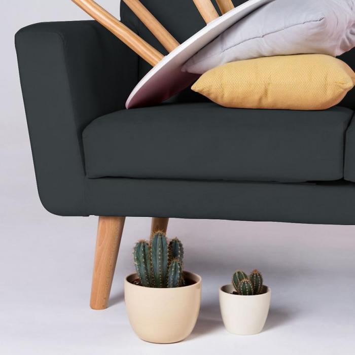 Sofa z serii Kair to propozycja skierowana do osób, które cenią sobie połączenie klasyki i elegancji z nowoczesnością. Sofa Kair idealnie sprawdzi się podczas długich spotkań rodziny czy znajomych. Sofy bez funkcji spania, które doskonale będą pasować do wnętrz urządzonych niemal w każdym stylu. Na uwagę zasługuje ich oryginalny design oraz nóżki w kolorze naturalnym. Całość wykonano z tkaniny wypełnionej pianką. Nowoczesna sofa występuje w różnej kolorystyce. To odpowiednie rozwiązanie do wielu salonów, którym potrzeba wyrazistego elementu kolorystycznego. Jest to łatwy sposób na to, aby zmienić i ożywić charakter całego wnętrza.