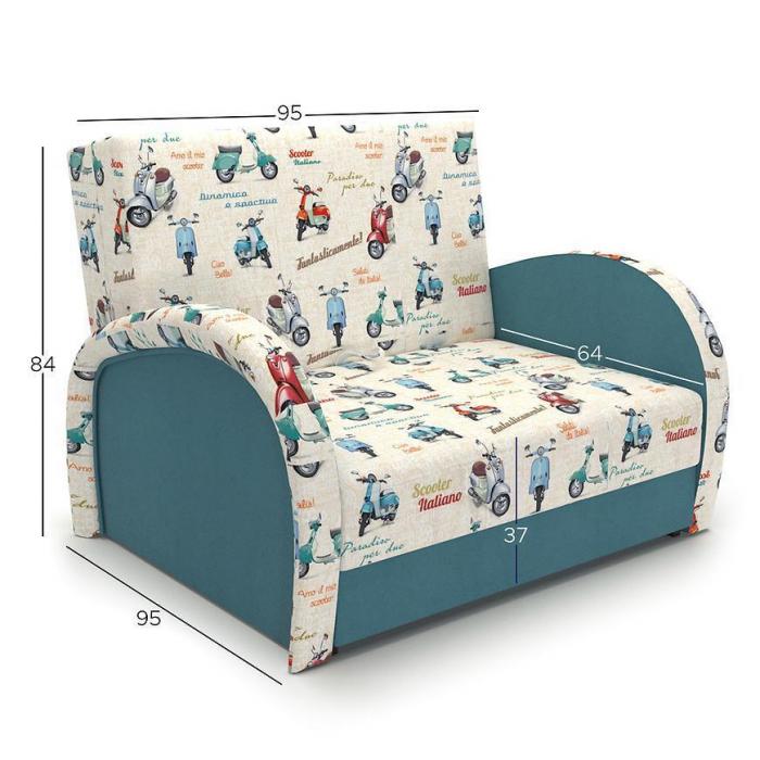 Kompaktowa, jednoosobowa i wygodna sofka, która sprawdzi się w pokoju dziecięcym. Szeroki wybór kolorowych tkanin sprawi, że mebel przypadnie do gustu każdemu, nawet najbardziej wymagającemu, małemu użytkownikowi. Sofa z funkcją spania oraz praktycznym pojemnikiem na pościel. Z powodzeniem zastąpi łóżko sypialniane.