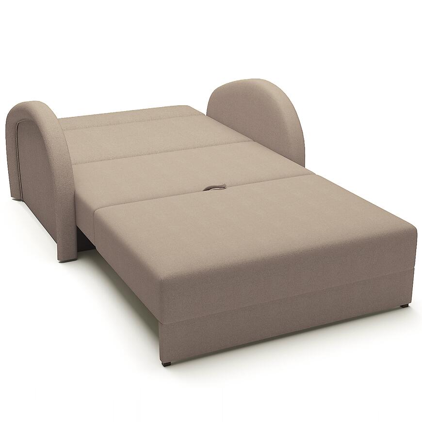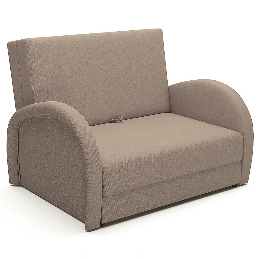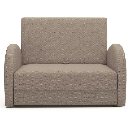 Sofa Kaja I Vena 7 to kompaktowa sofa w beżowej tkaninie, łącząca wygodne siedzenie z praktyczną funkcją spania (195x80 cm) z mechanizmem wózek. Siedzisko oparte na sprężynie falistej zapewnia komfort codziennego użytkowania, a schowek na pościel umożliwia wygodne przechowywanie. Model nie posiada nóg ani poduszek w komplecie, co podkreśla jego minimalistyczny charakter. Wymiary: szer. 95 cm, gł. 95 cm, wys. 84 cm. Waga: 40 kg.