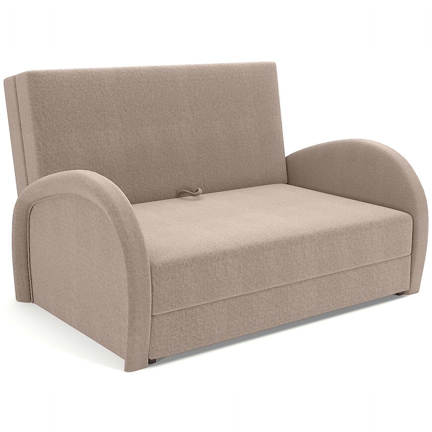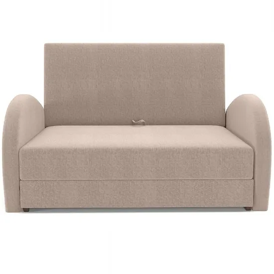 Sofa Kaja II Vena 7 to przestronna sofa w beżowej tkaninie, łącząca wygodne siedzenie z praktyczną funkcją spania (195x110 cm) z mechanizmem wózek. Siedzisko oparte na sprężynie falistej zapewnia komfort codziennego użytkowania, a schowek na pościel umożliwia wygodne przechowywanie. Model nie posiada nóg ani poduszek w komplecie, co podkreśla jego minimalistyczny i nowoczesny charakter. Wymiary: szer. 126 cm, gł. 95 cm, wys. 84 cm. Waga: 47 kg.