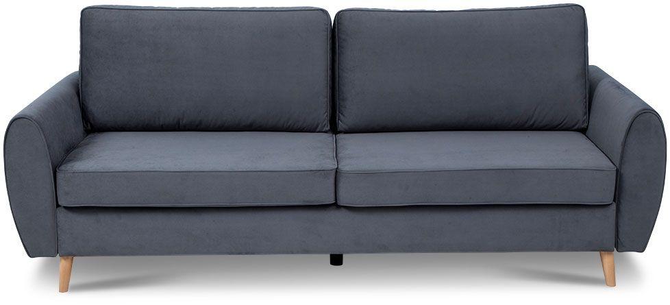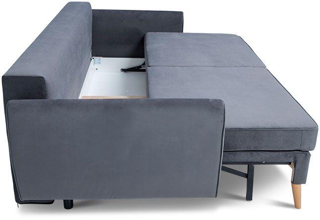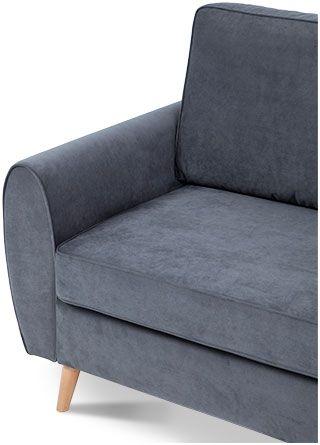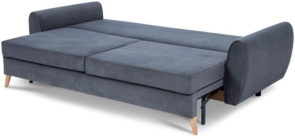 Sofa Kirsten wyraźnie nawiązuje do niezwykle popularnych trendów skandynawskich. Przejawia się to w kilku aspektach. Przede wszystkim to jej funkcjonalność. Jest to sofa rozkładana – w razie potrzeby może służyć jako wygodne miejsce do spania o powierzchni 151x195 cm. Wyposażona jest w automat ułatwiający rozkładanie oraz praktyczną skrzynię na pościel. Po drugie, ma piękny grafitowy odcień tapicerki, która doskonale komponuje się z wszechobecnymi we wnętrzach skandynawskich bielą, beżem oraz naturalnym drewnem (tapicerkę można odkurzać i prać przy pomocy odpowiednich detergentów). Po trzecie, sofa Kirsten ma wysokie bukowe nóżki, które dodają jej uroku. Idealnie sprawdzi się jako sofa do salonu, pokoju dziennego, jadalni, a nawet sofa do pokoju nastolatka.