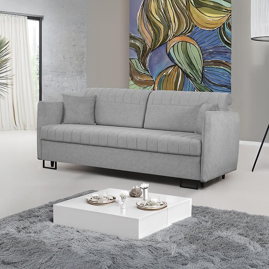 Rodzaj wypełnienia to sprężyna bonell, co gwarantuje odpowiednie podparcie ciała oraz trwałość mebla przez długie lata. Sofa posiada również praktyczny schowek na pościel, który idealnie sprawdzi się do przechowywania kołder, poduszek czy koców.