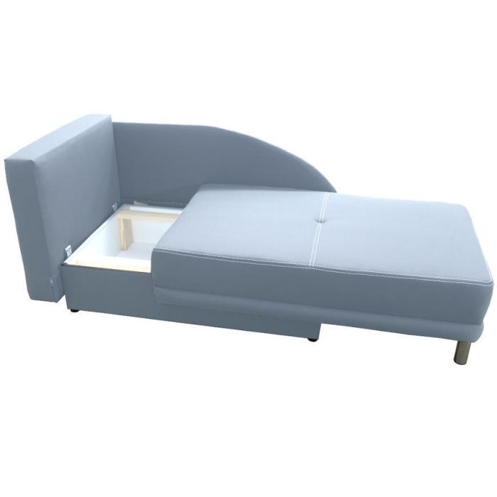 Sofa z serii Laura Cablo w eleganckim kolorze niebieskiego tkaniny sprawdzi się w niewielkich wnętrzach, pokoju młodzieżowym gabinecie, czy też sypialni, gdyż złożony mebel zajmuje niewiele miejsca ma wymiary 150 x85x 80 cm. Dostępna jest w wersji prawej lub lewej w zależności od Naszych potrzeb. Sofa jest rozkładana o wymiarach 83 x 198 cm. Sofa ma system rozkładania DL, który jest bardzo łatwy - polega na wysunięciu siedziska, a następnie złożenie oparcia. Mebel wypełniony jest sprężyną bonell, którą wpływa na komfort użytkowania. Ponadto posiada jeden pojemnik, do którego można schować pościel, dodatkowe koce czy też poduszki. Nóżki w kolorze chromu zapewniają stabilność mebla. Dołączone do kompletu poduszki dopełniają całość oraz warunkują utrzymanie ciała w dobrej pozycji. Sofa będzie idealnym wyborem dla miłośników minimalistycznych form i eleganckiej prostoty. To odpowiednie rozwiązanie do wielu niewielkich pokoi, którym potrzeba oszczędnego zagospodarowania miejsca. Dostępny także w kolorze szarym.