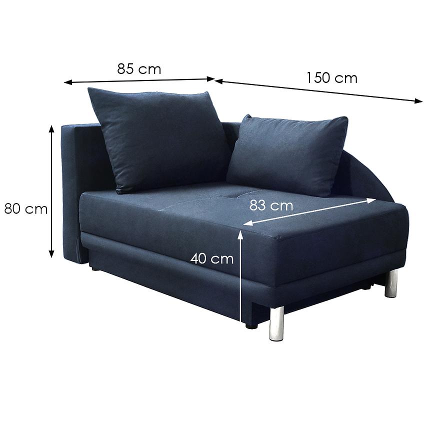 Sofa Laura L Vena 12 to kompaktowy i funkcjonalny mebel o wymiarach 150x85x80 cm, idealny do wygodnego odpoczynku i spania. Wyposażona w funkcję spania o powierzchni 83x198 cm oraz praktyczny schowek na pościel, zapewnia zarówno komfort, jak i praktyczność. Siedzisko wypełnione sprężyną bonell, tapicerka z trwałej tkaniny w kolorze granatowym oraz stabilne nogi gwarantują wygodę i solidność. Sofa posiada automatyczny mechanizm rozkładania i poduszki w zestawie, a minimalistyczny design łączy funkcjonalność z nowoczesnym stylem.