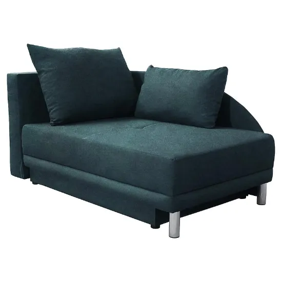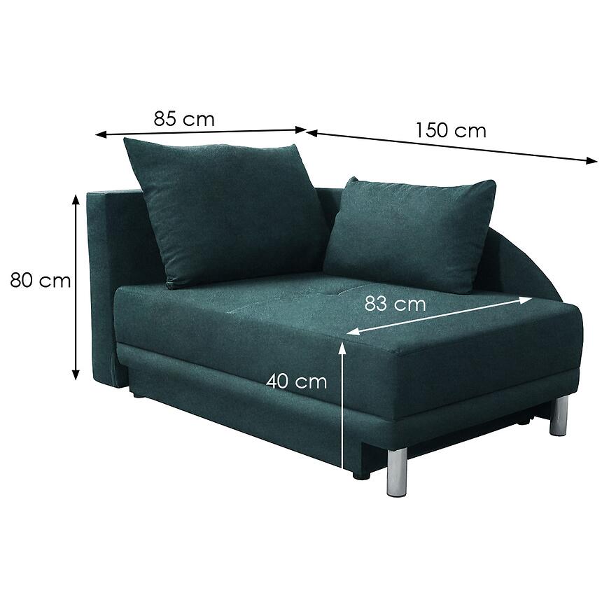Sofa Laura L Vena 4 to kompaktowy i funkcjonalny mebel o wymiarach 150x85x80 cm, łączący wygodę z praktycznym rozwiązaniem. Wyposażona w funkcję spania o powierzchni 83x198 cm oraz schowek na pościel, zapewnia komfortowe miejsce do odpoczynku i przechowywania. Siedzisko wypełnione sprężyną bonell, tapicerka z trwałej tkaniny w kolorze zielonym oraz stabilne nogi gwarantują wygodę i solidność. Sofa posiada automatyczny mechanizm rozkładania oraz poduszki w zestawie, a minimalistyczny design podkreśla nowoczesny charakter mebla.