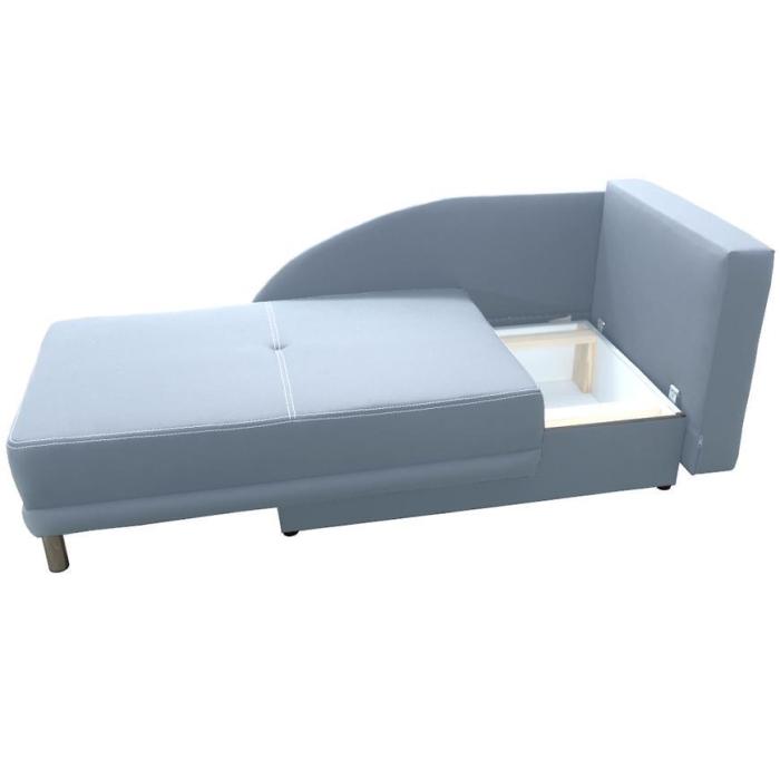 Sofa z serii Laura Cablo w eleganckim kolorze niebieskiego tkaniny sprawdzi się w niewielkich wnętrzach, pokoju młodzieżowym gabinecie, czy też sypialni, gdyż złożony mebel zajmuje niewiele miejsca ma wymiary 150 x85x 80 cm. Dostępna jest w wersji prawej lub lewej w zależności od Naszych potrzeb. Sofa jest rozkładana o wymiarach 83 x 198 cm. Sofa ma system rozkładania DL, który jest bardzo łatwy - polega na wysunięciu siedziska, a następnie złożenie oparcia. Mebel wypełniony jest sprężyną bonell, którą wpływa na komfort użytkowania. Ponadto posiada jeden pojemnik, do którego można schować pościel, dodatkowe koce czy też poduszki. Nóżki w kolorze chromu zapewniają stabilność mebla. Dołączone do kompletu poduszki dopełniają całość oraz warunkują utrzymanie ciała w dobrej pozycji. Sofa będzie idealnym wyborem dla miłośników minimalistycznych form i eleganckiej prostoty. To odpowiednie rozwiązanie do wielu niewielkich pokoi, którym potrzeba oszczędnego zagospodarowania miejsca. Dostępny także w kolorze szarym.
