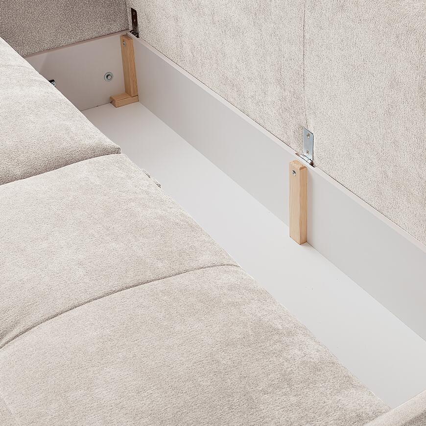 Komfort siedzenia oraz stabilne podparcie gwarantuje sprężyna falista zastosowana w siedzisku, co przekłada się na trwałość i wygodę użytkowania. Sofa posiada także praktyczny schowek na pościel, który umożliwia utrzymanie porządku i oszczędność miejsca w salonie. Dzięki wbudowanemu automatowi rozkładania DL proces zmiany sofy w łóżko jest szybki i bezproblemowy, co docenią osoby ceniące funkcjonalne rozwiązania.