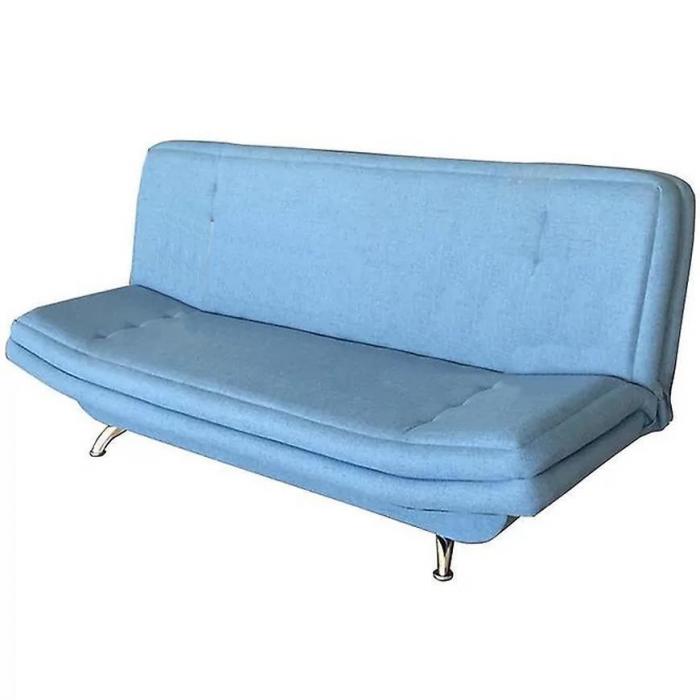 Sofa rozkładana Lodka Nikiel Aura z funkcją spania to idealne rozwiązanie do niewielkich pomieszczeń. Całość został wykonana z tkaniny, natomiast w meblu zastosowano sprężyny bonell. Elegancji dodają nóżki w kolorze chromu. Po rozłożeniu to okazjonalne miejsce do spania o wymiarach 130x195 cm posiadający automat wersalkowy. Polega na podniesieniu siedziska i przyciśnięciu go do oparcia, aż do momentu usłyszenia charakterystycznego „klik-klak”. Wówczas opuszczamy siedzisko, zyskując płaską powierzchnię. Ponadto posiada pojemnik, do którego można schować pościel, dodatkowe koce czy też poduszki. Niewielki nóżki w kolorze chromu zapewniają stabilność mebla. Sofa będzie idealnym wyborem dla miłośników minimalistycznych form i eleganckiej prostoty. Sofa ta idealnie dopasuje się zarówno do tradycyjnych, jak i tych bardziej nowoczesnych wnętrz.