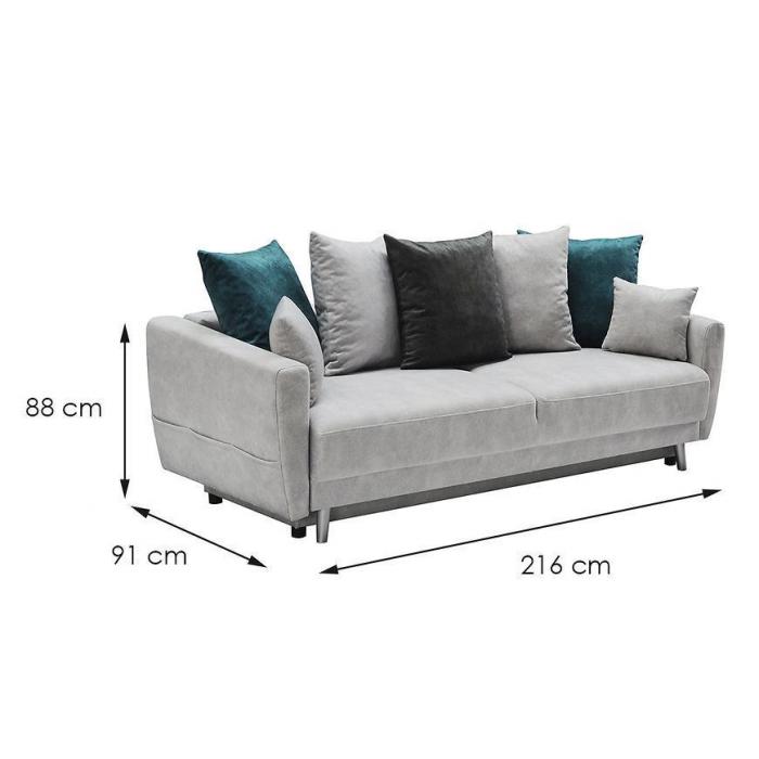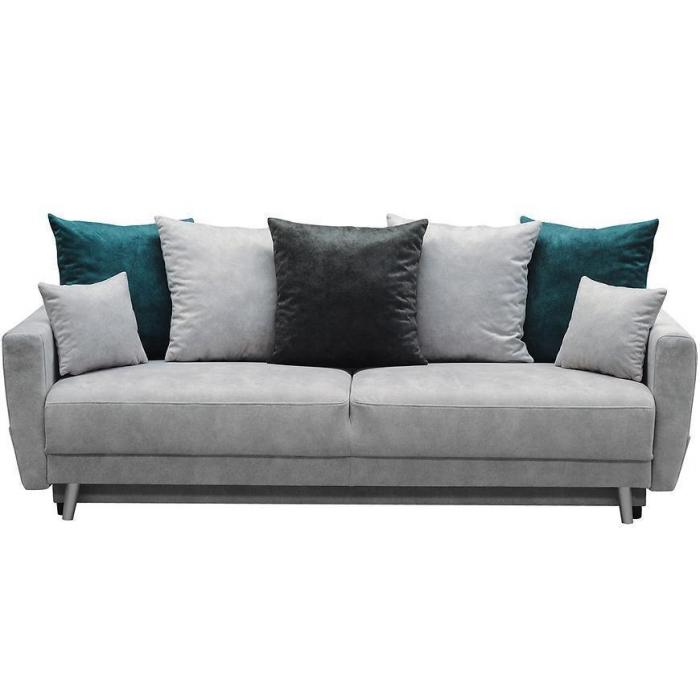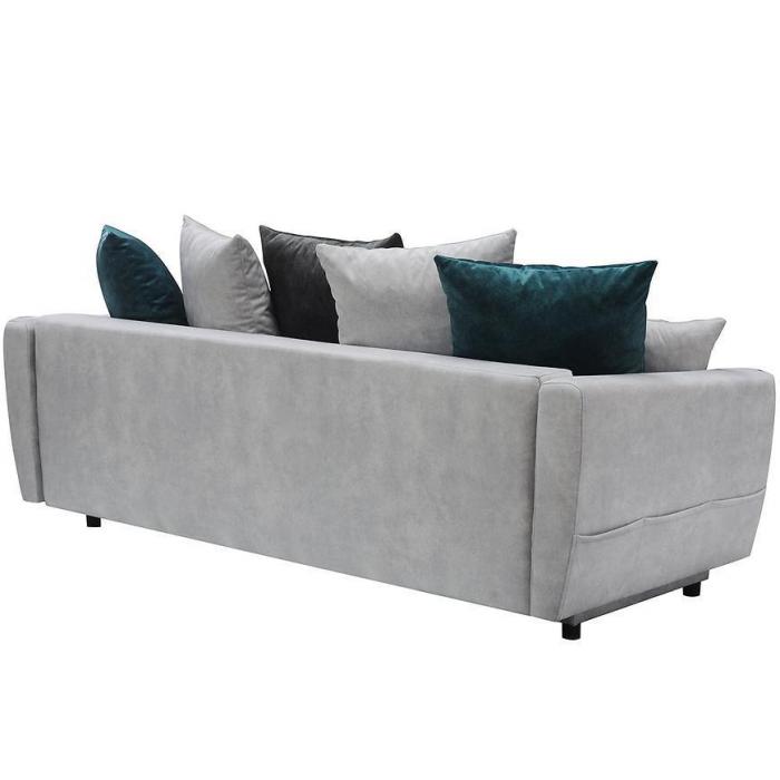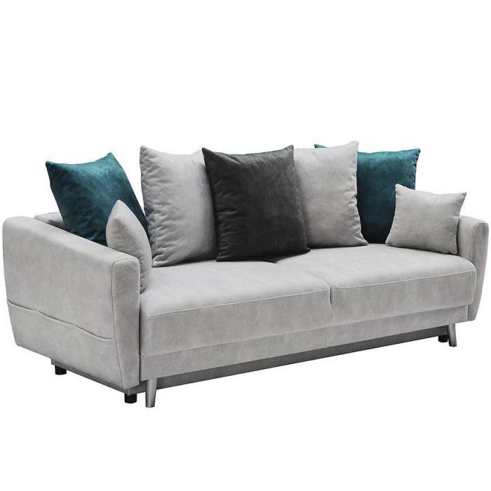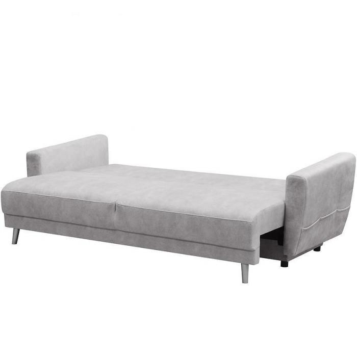Sofa Mela Sally to praktyczna i funkcjonalna kanapa zaprojektowana w nowoczesnym stylu. Mebel ten posiada funkcję spania oraz praktyczny pojemnik na pościel. Po rozłożeniu powierzchnia spania wynosi 132x190 cm. System jest bardzo prosty – najpierw wysuwamy siedzisko, a następnie składamy oparcie. Wypełnienie mebla stanowi sprężyna falista, które zwiększają komfort podczas codziennego użytkowania. Świetnie sprawdzi się zarówno w salonie jak i pokoju dziennym, pełniąc funkcję zarówno miejsca spotkań jak i miejsca do spania.