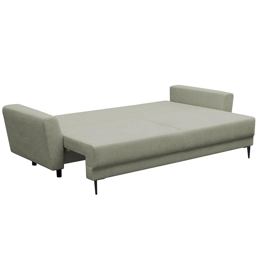 Sofa Mona w kolorze beżowym to praktyczna i funkcjonalna kanapa zaprojektowana w nowoczesnym stylu. Mebel ten posiada funkcję spania oraz praktyczny pojemnik na pościel. Po rozłożeniu powierzchnia spania wynosi 195x147 cm. System rozkładnia jest bardzo prosty- DL. Wypełnienie siedziska stanowi sprężyna falista, a oparcie pianka + płyta. Świetnie sprawdzi się zarówno w salonie jak i pokoju dziennym, pełniąc funkcję zarówno miejsca spotkań jak i miejsca do spania.