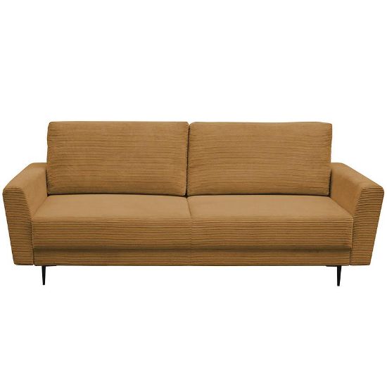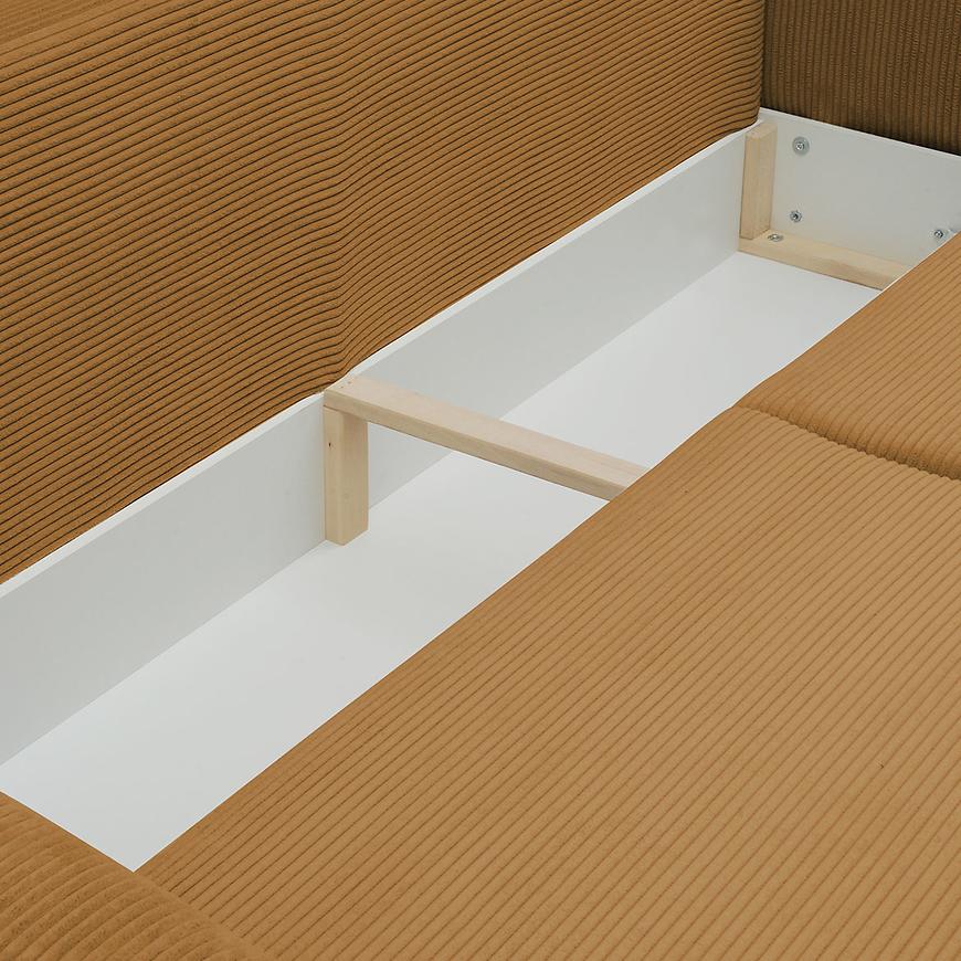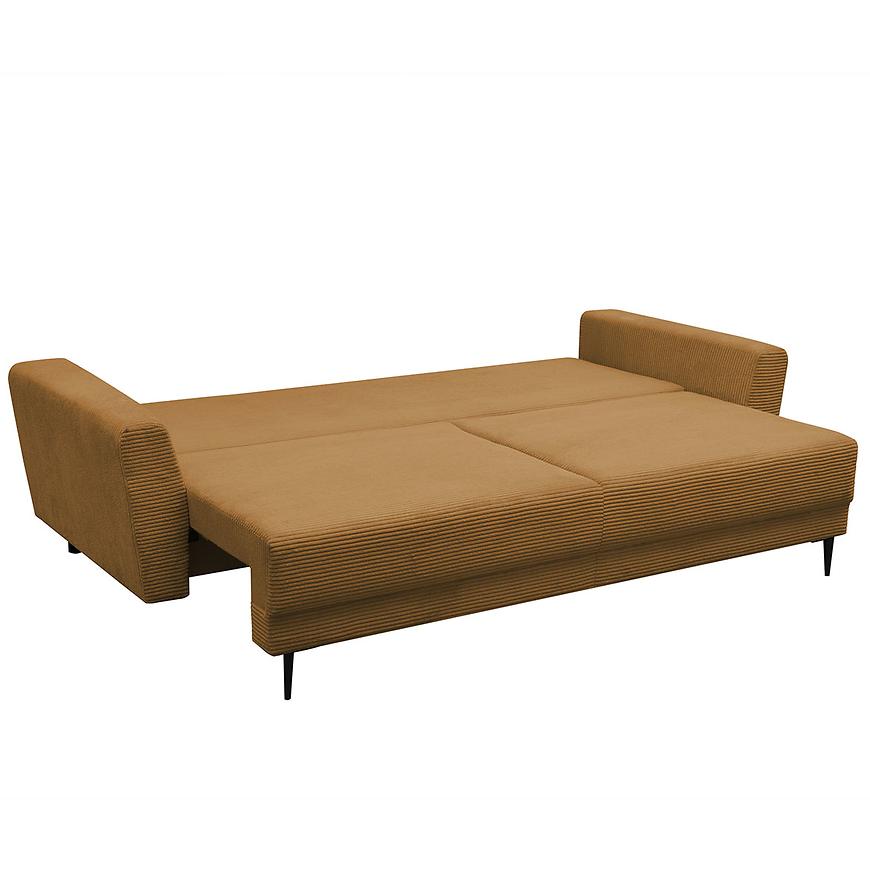 Sofa Mona w kolorze miodowy sztruks to praktyczna i funkcjonalna kanapa zaprojektowana w nowoczesnym stylu. Mebel ten posiada funkcję spania oraz praktyczny pojemnik na pościel. Po rozłożeniu powierzchnia spania wynosi 195x147 cm. System rozkładnia jest bardzo prosty- DL. Wypełnienie siedziska stanowi sprężyna falista, a oparcie pianka + płyta. Świetnie sprawdzi się zarówno w salonie jak i pokoju dziennym, pełniąc funkcję zarówno miejsca spotkań jak i miejsca do spania.
