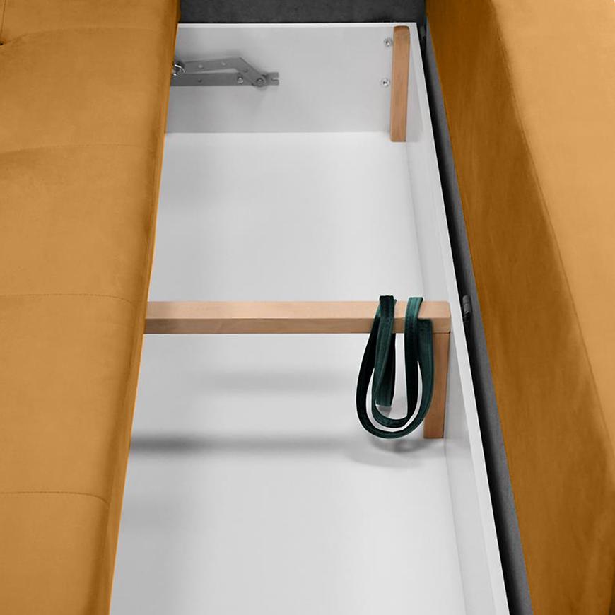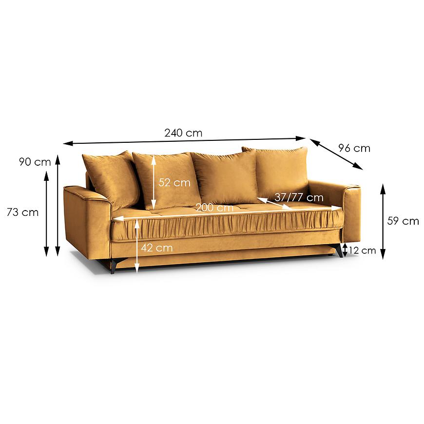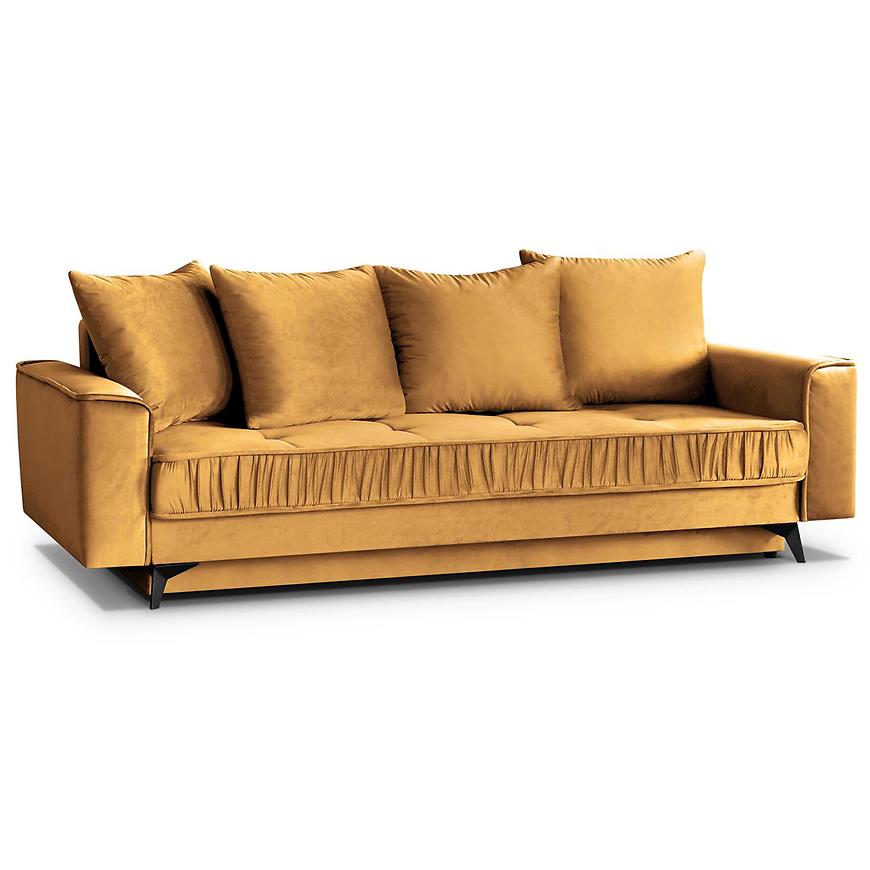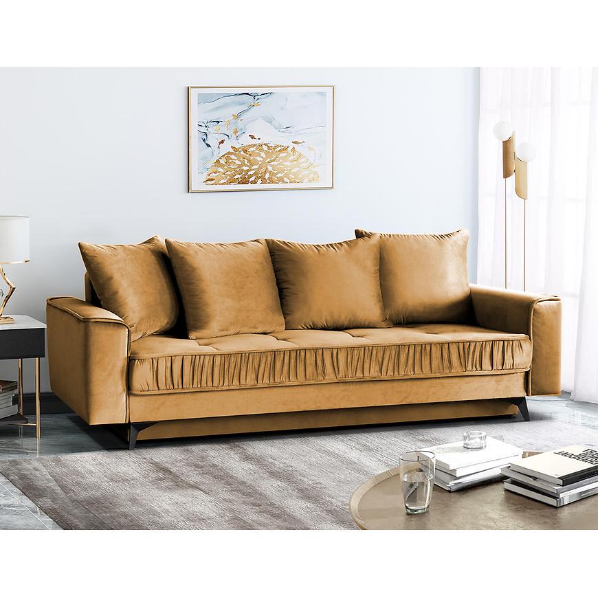 Sofa Monaco Velluto 08 to elegancka i funkcjonalna propozycja, tapicerowana musztardową tkaniną, która doda wnętrzu charakteru. Komfort użytkowania zapewnia wypełnienie ze sprężyny bonell i sprężyny falistej. Sofa posiada funkcję spania o wymiarach 140x200 cm, praktyczny schowek na pościel oraz poduszki w zestawie. Stabilne czarne nogi podkreślają nowoczesny design. Produkt wymaga złożenia.