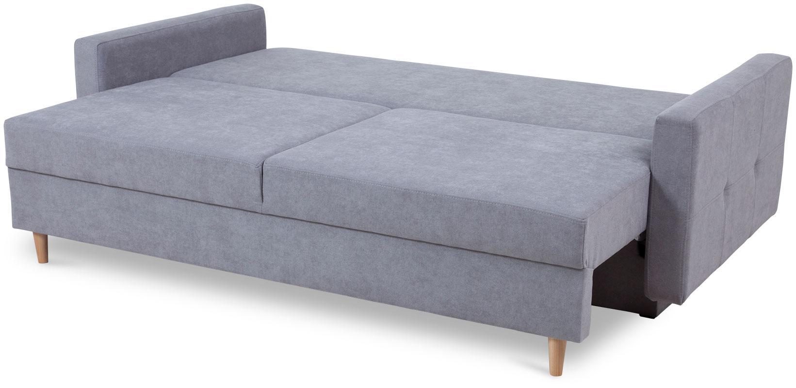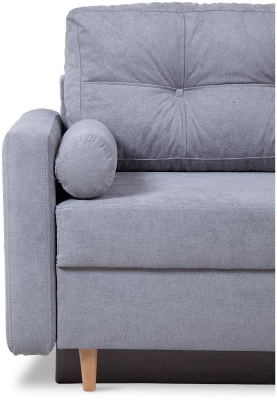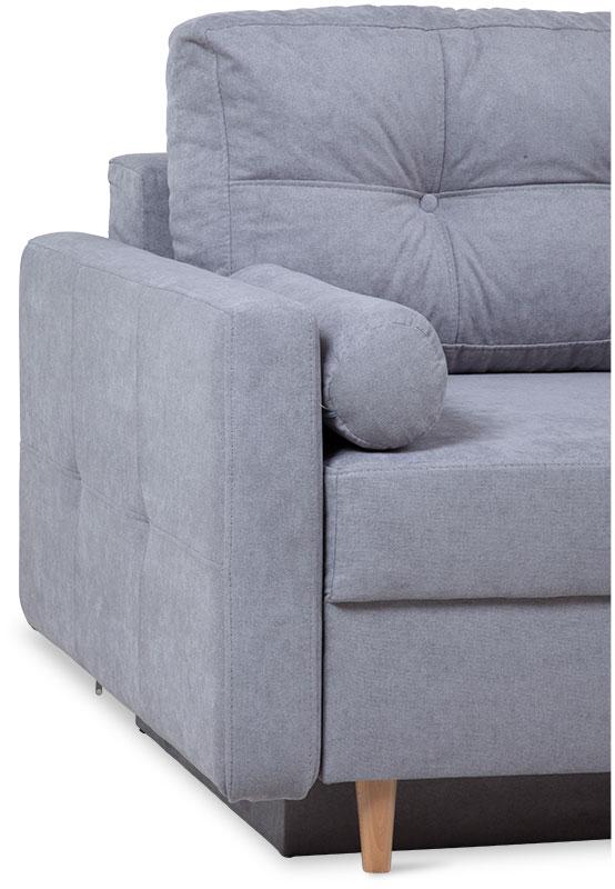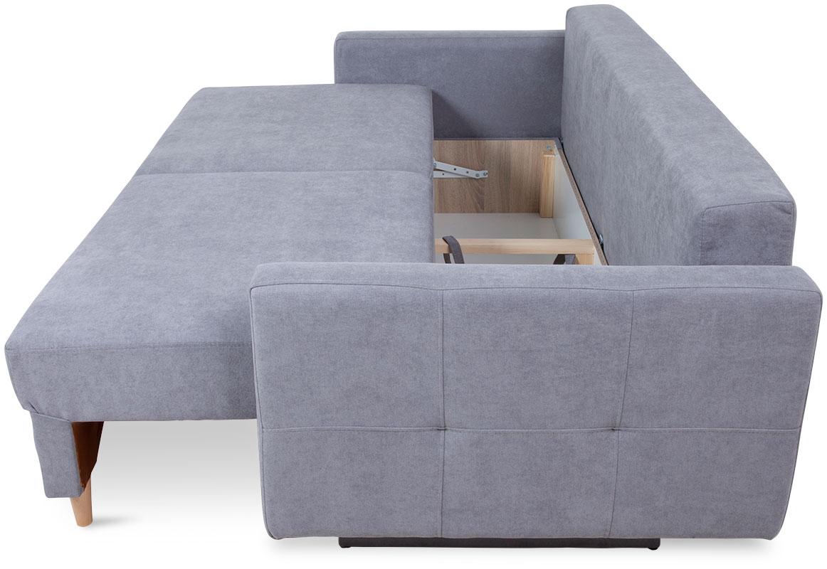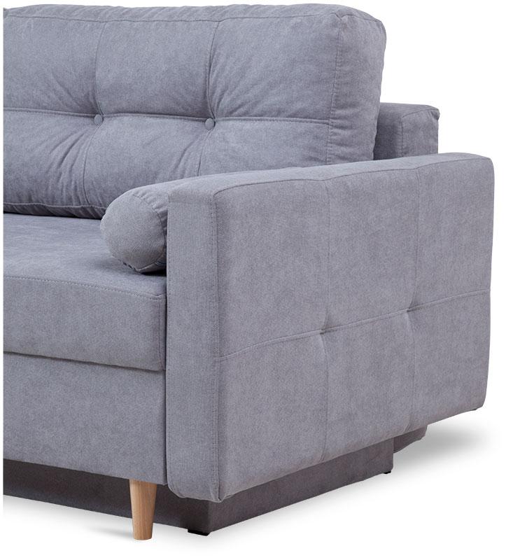 Sposób rozkładania DL to szybki i prosty sposób na rozłożenie sofy - wystarczy podnieść siedzisko do góry i przesunąć do przodu, a w miejsce siedziska kładziemy oparcie. Po rozłożeniu powierzchnia spania wynosi 155x190cm. Kanapa posiada pojemnik na pościel, w którym zmieścimy kołdrę i poduszkę zapewniając porządek w pomieszczeniu.