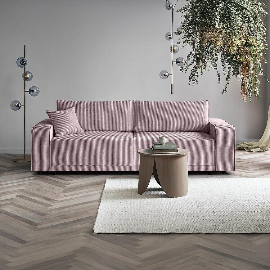 Sofa Primo Poso 27 to funkcjonalny i stylowy mebel do salonu, łączący komfort z nowoczesnym designem. Tapicerowana w różowej tkaninie, posiada wygodne siedzisko na sprężynie falistej. Wyposażona w funkcję spania o powierzchni 136x200 cm oraz schowek na pościel, sprawdzi się zarówno na co dzień, jak i dla gości. System rozkładania DL ułatwia użytkowanie, a do zestawu dołączone są miękkie poduszki.