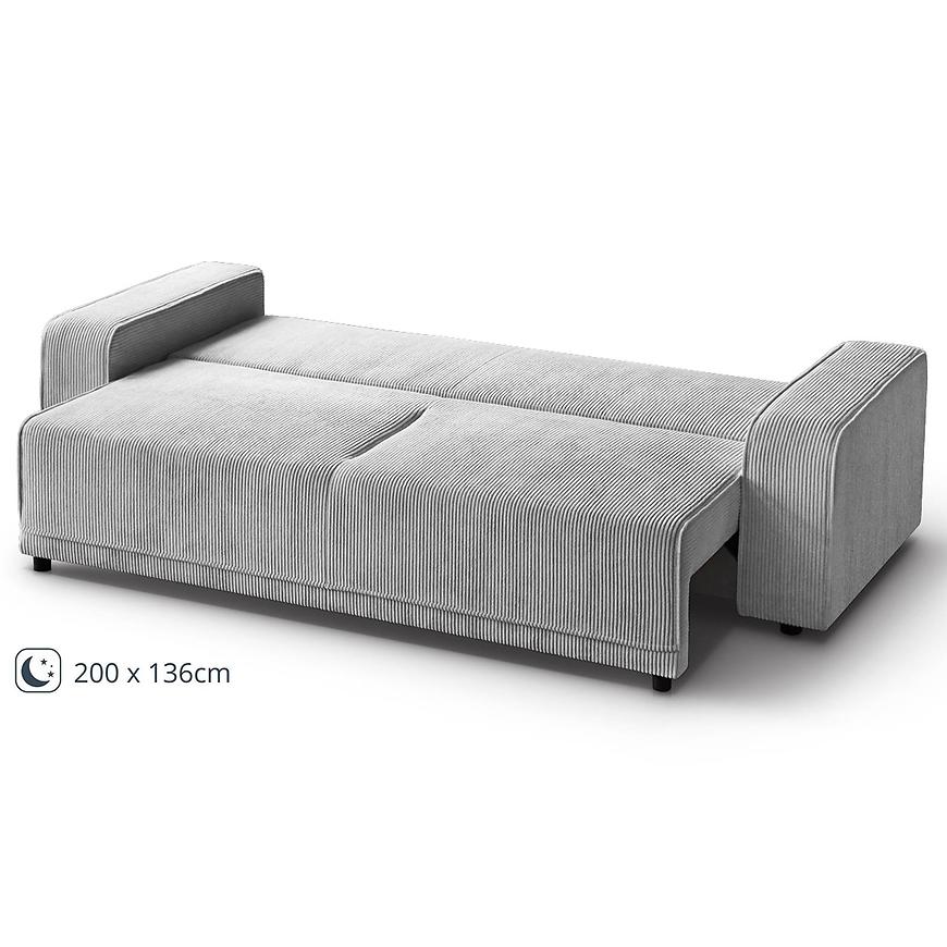 Sofa Primo Poso 55 to nowoczesny i funkcjonalny mebel do salonu, łączący wygodę z eleganckim designem. Tapicerowana w szarej tkaninie, posiada komfortowe siedzisko na sprężynie falistej. Wyposażona w funkcję spania o powierzchni 136x200 cm oraz schowek na pościel, idealnie sprawdzi się na co dzień i dla gości. System rozkładania DL ułatwia użytkowanie, a do zestawu dołączone są miękkie poduszki.