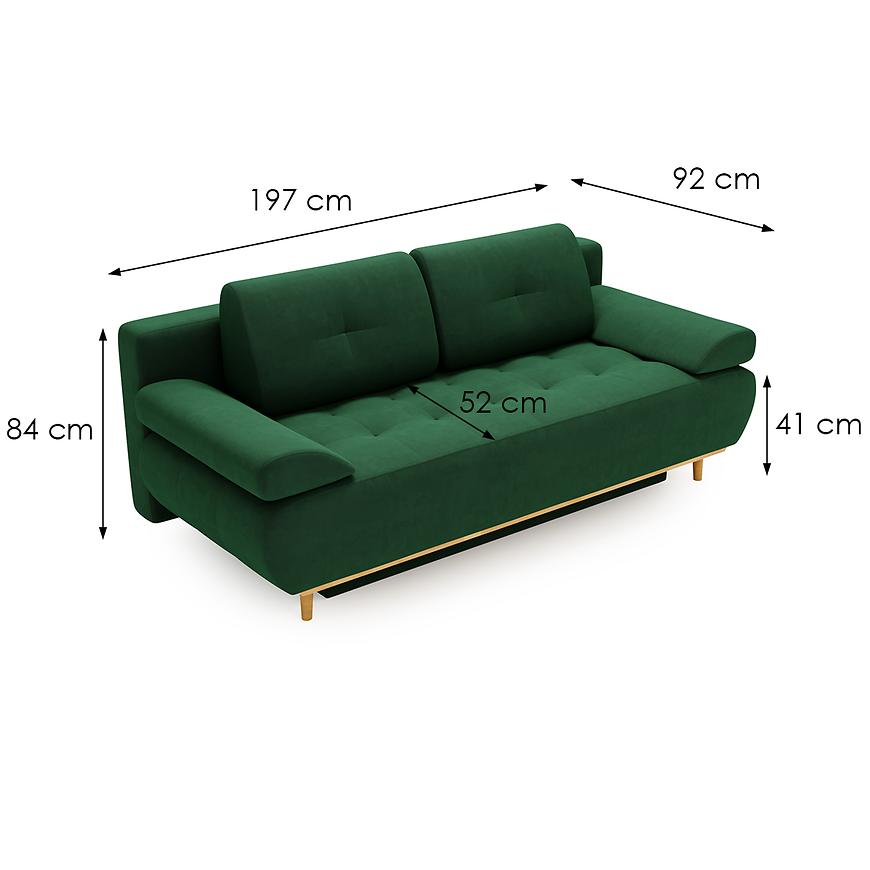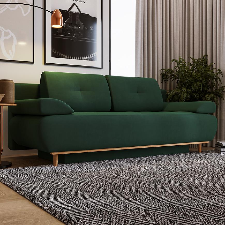Sofa Raspberry Salvador to doskonałe połączenie nowoczesnego designu i funkcjonalności, które z łatwością wkomponuje się w każde wnętrze. Utrzymana w modnym, zielonym kolorze, stanowi wyrazisty element dekoracyjny, dodając pomieszczeniu energii i świeżości. Tapicerka wykonana z wysokiej jakości tkaniny zapewnia miękkość i komfort użytkowania, jednocześnie będąc wytrzymałą i odporną na codzienne użytkowanie.