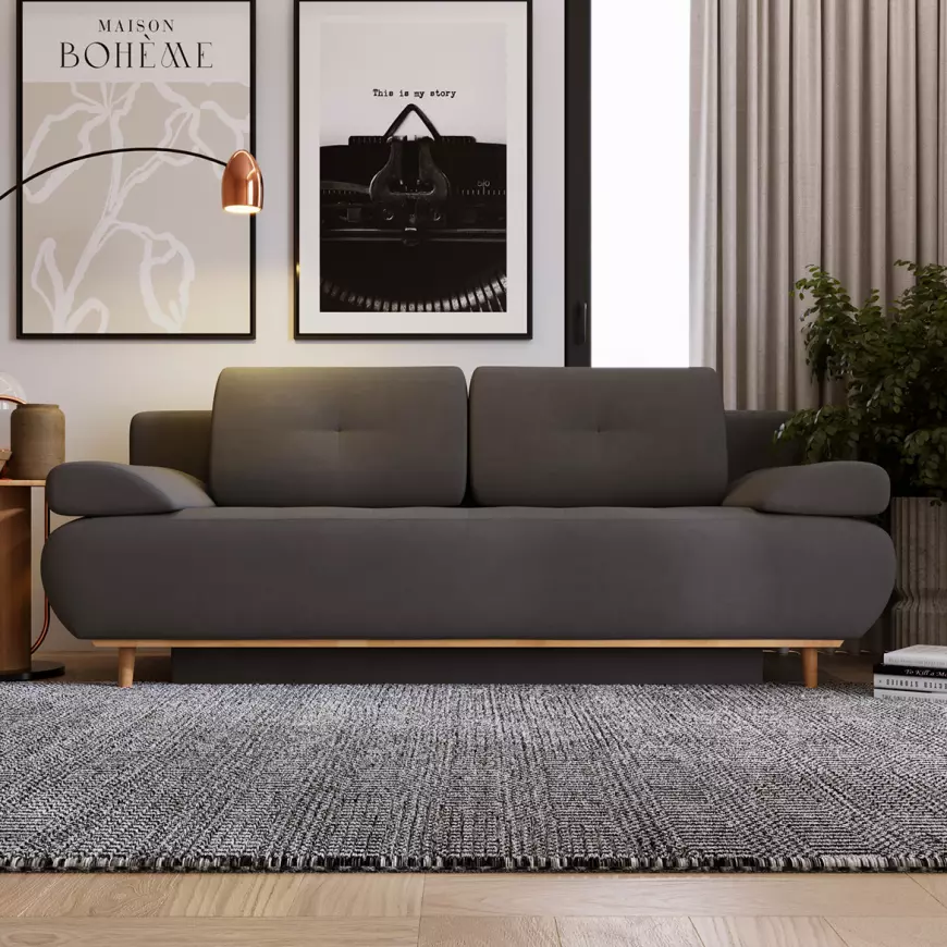 Sofa wyposażona jest w łatwy w obsłudze mechanizm rozkładania typu DL, który pozwala szybko i bez wysiłku przekształcić ją w łóżko. Schowek na pościel to praktyczne rozwiązanie, które ułatwia przechowywanie poduszek, koców czy pościeli, zapewniając porządek w salonie. Zintegrowany automat dodatkowo ułatwia rozkładanie, co czyni tę sofę jeszcze bardziej funkcjonalną.