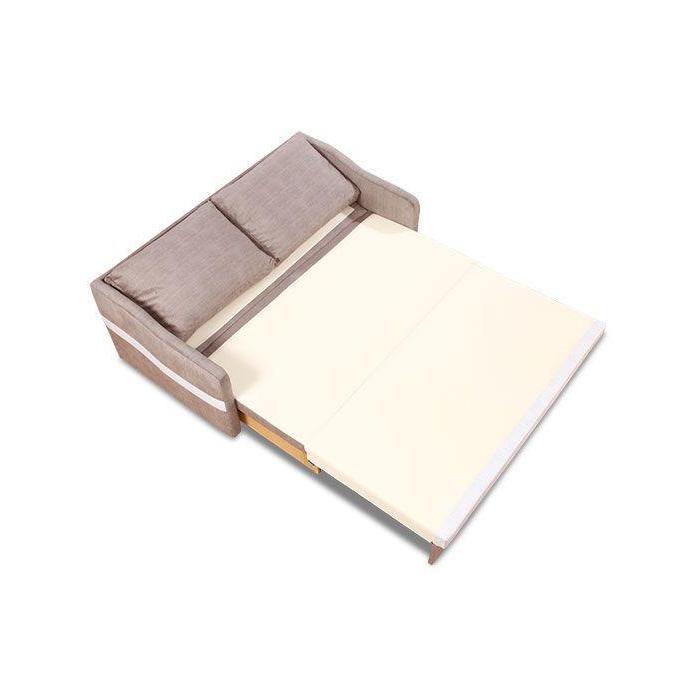 Sposób rozkładania typu wózek to prosty sposób na rozłożenie kanapy, wystarczy wyciągnąć z dolnej części sofy tzw wózek w kierunku do siebie a następnie należy rozłożyć leżący na nim materac. Po rozłożeniu powierzchnia spania wynosi 140x188cm. Kanapa posiada pojemnik na pościel, w którym zmieścimy kołdrę i poduszkę zapewniając porządek w pomieszczeniu.