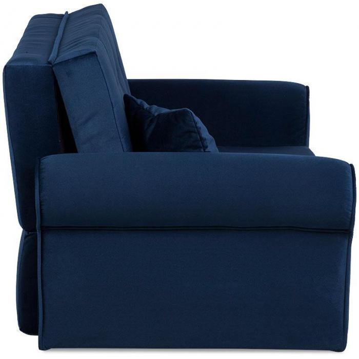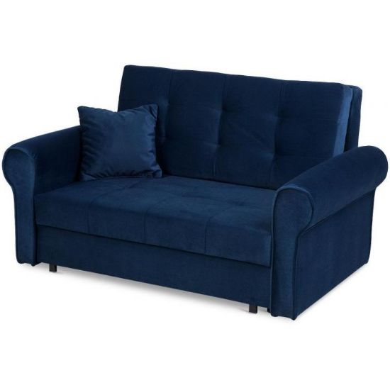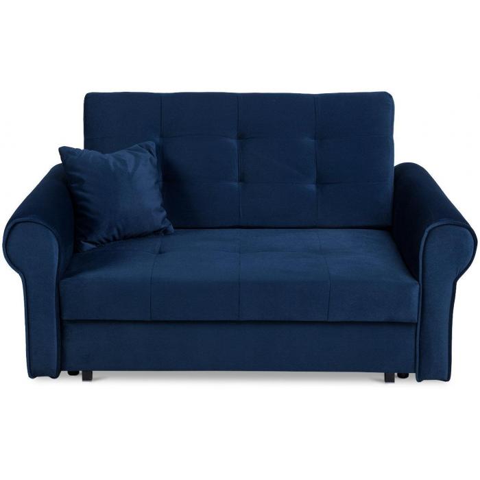 Sofa Riva z funkcją spania to wygoda i funkcjonalność. To produkt, który posiada kompaktowe wymiary dzięki czemu nada się do małego mieszkania. Granatowy kolor obicia wpasuje się w niejeden salon. Sprężyny faliste oraz poduszki oparciowe dają poczucie komfortu podczas wypoczynku lub podczas siedzenia przed telewizorem. Kanapa z pojemnikiem to idealne rozwiązanie, które świetnie sprawdzi się w każdym pomieszczeniu.