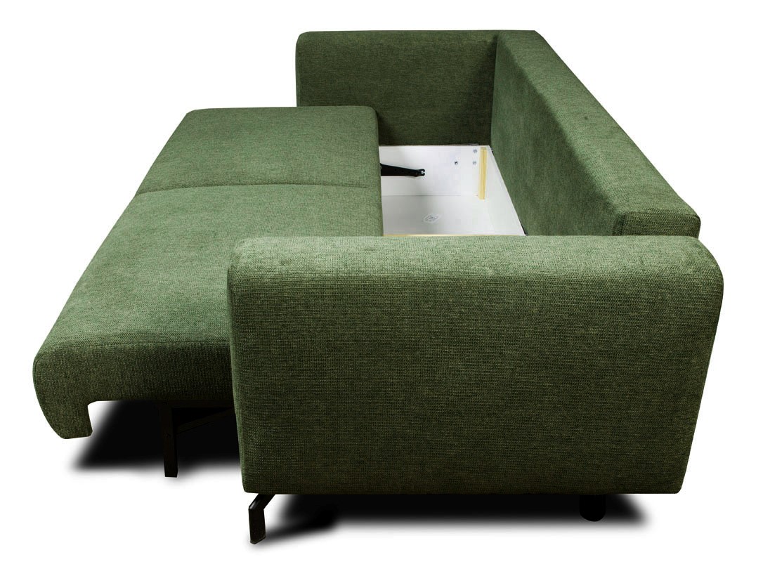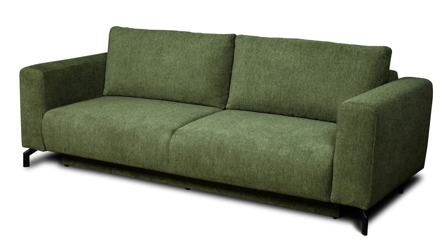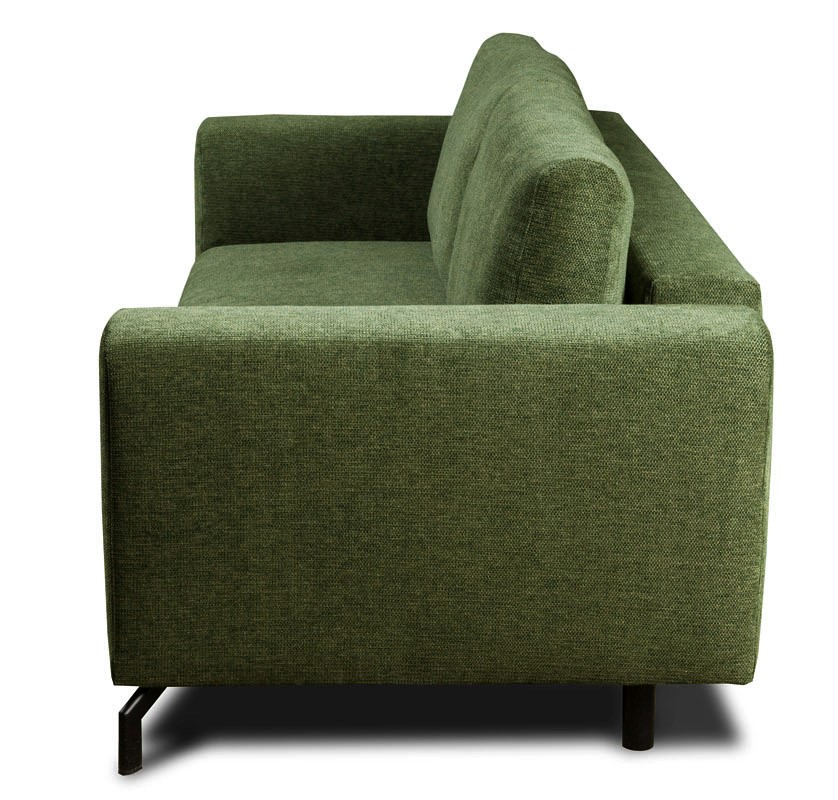 Sofa rozkładana Almi to wygodna i nowoczesna sofa z pojemnikiem na pościel, z funkcją spania oraz automatem wspomagającym rozkładanie. W komplecie sofy są 2 poduszki oparciowe. Sofa wykonana w tkaninie Aragon. W siedzisku mebla zastosowano sprężyny faliste, a w oparciu sprężyny bonell, co znacznie podnosi komfort wypoczynku. Sposób rozkładania to popularny w sofach system DL. Po rozłożeniu sofy otrzymujemy dużą powierzchnię spania o wymiarach 144x197 cm. W sofie zastosowano nóżki ozdobne metalowe oraz nóżki techniczne z tworzywa sztucznego. Sofa została wykonana w tkaninie Aragon 39 w kolorze oliwkowym.