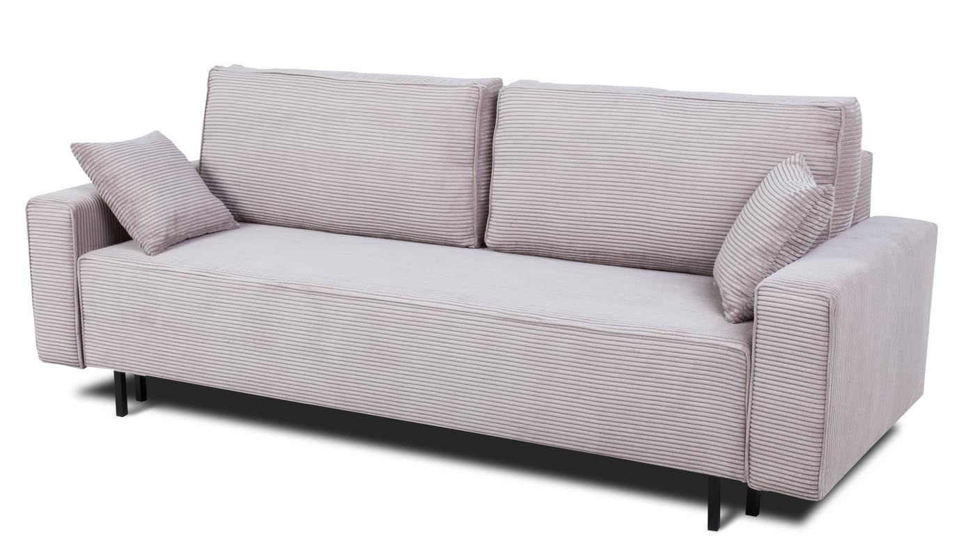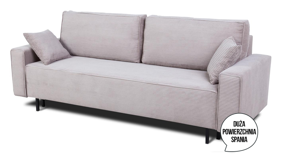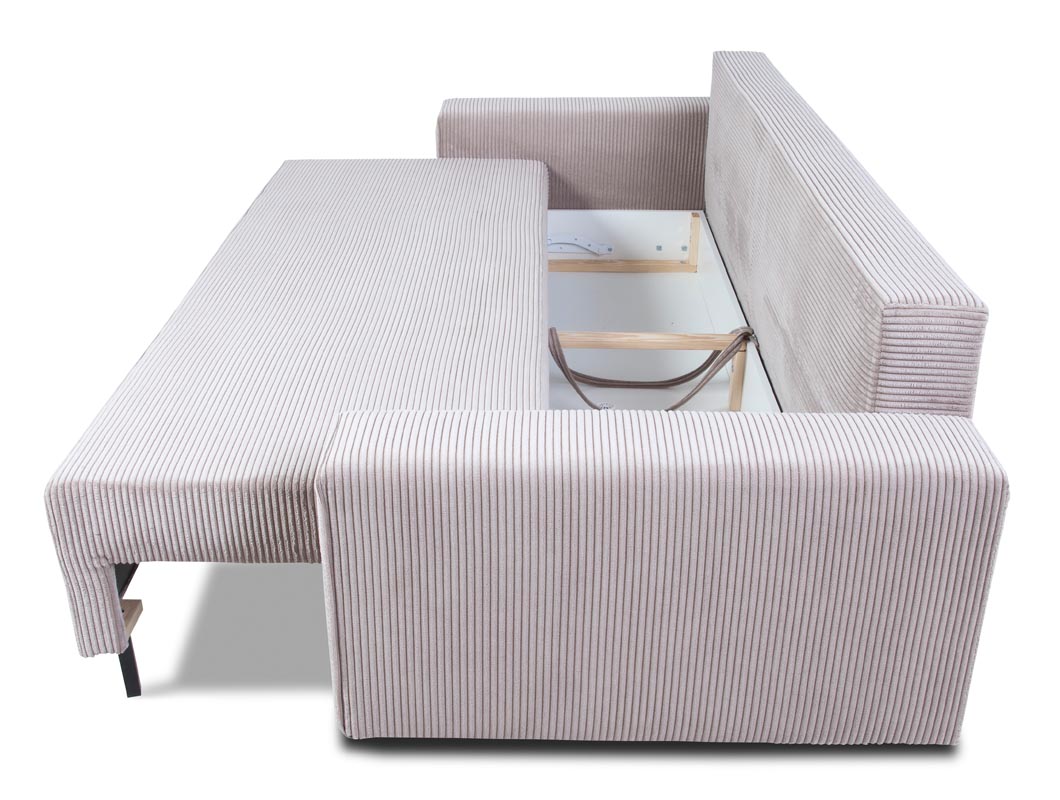 Praktyczność sofy Amaro podkreśla również pojemnik na pościel, który pozwoli Ci zachować porządek i maksymalnie wykorzystać dostępną przestrzeń. Już nigdy nie będziesz musiał się zastanawiać, gdzie schować koce czy poduszki – teraz wszystko będzie w zasięgu ręki.