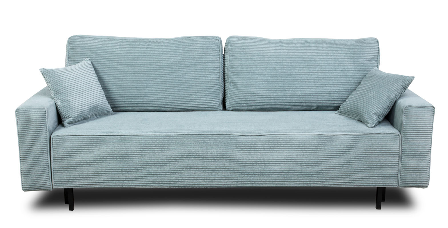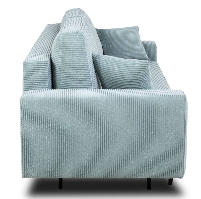 Sofa Amaro została wykonana z wysokiej jakości tkaniny Zoom, która charakteryzuje się wyjątkowym, delikatnym sztruksowym wykończeniem. Jasny niebieski kolor dodaje sofie świeżości i lekkości, jednocześnie nadając jej nowoczesnego i eleganckiego wyglądu. Metalowe nóżki w kolorze czarnym dodają sofie stabilności i solidności, podkreślając jej nowoczesny design.