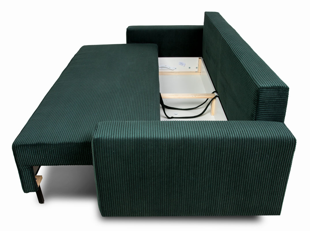 Jedną z kluczowych cech sofy Amaro jest jej funkcja spania, która pozwala na wygodne przekształcenie sofy w łóżko w zaledwie kilka chwil. Automat wspomagający rozkładanie oraz pojemnik na pościel umieszczony pod siedziskiem sprawiają, że przechowywanie pościeli czy dodatkowych kołder nie stanowi problemu. Sposób rozkładania typu DL gwarantuje prostotę i szybkość użytkowania. Po rozłożeniu sofa oferuje imponującą powierzchnię spania o wymiarach 150x197 cm, zapewniającą wygodę podczas nocnego wypoczynku.
