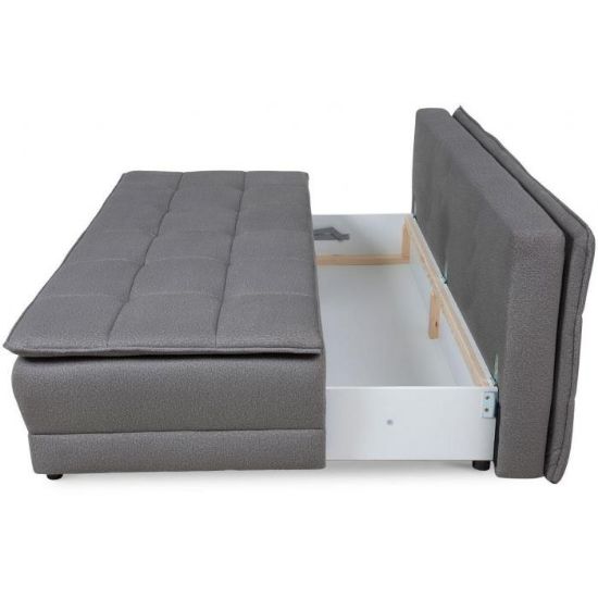 Dodatkowym atutem sofy Diori jest pojemnik na pościel, który umożliwia przechowywanie kołder, poduszek i koców. To praktyczne rozwiązanie pomaga utrzymać porządek w salonie i oszczędza miejsce w innych częściach domu.