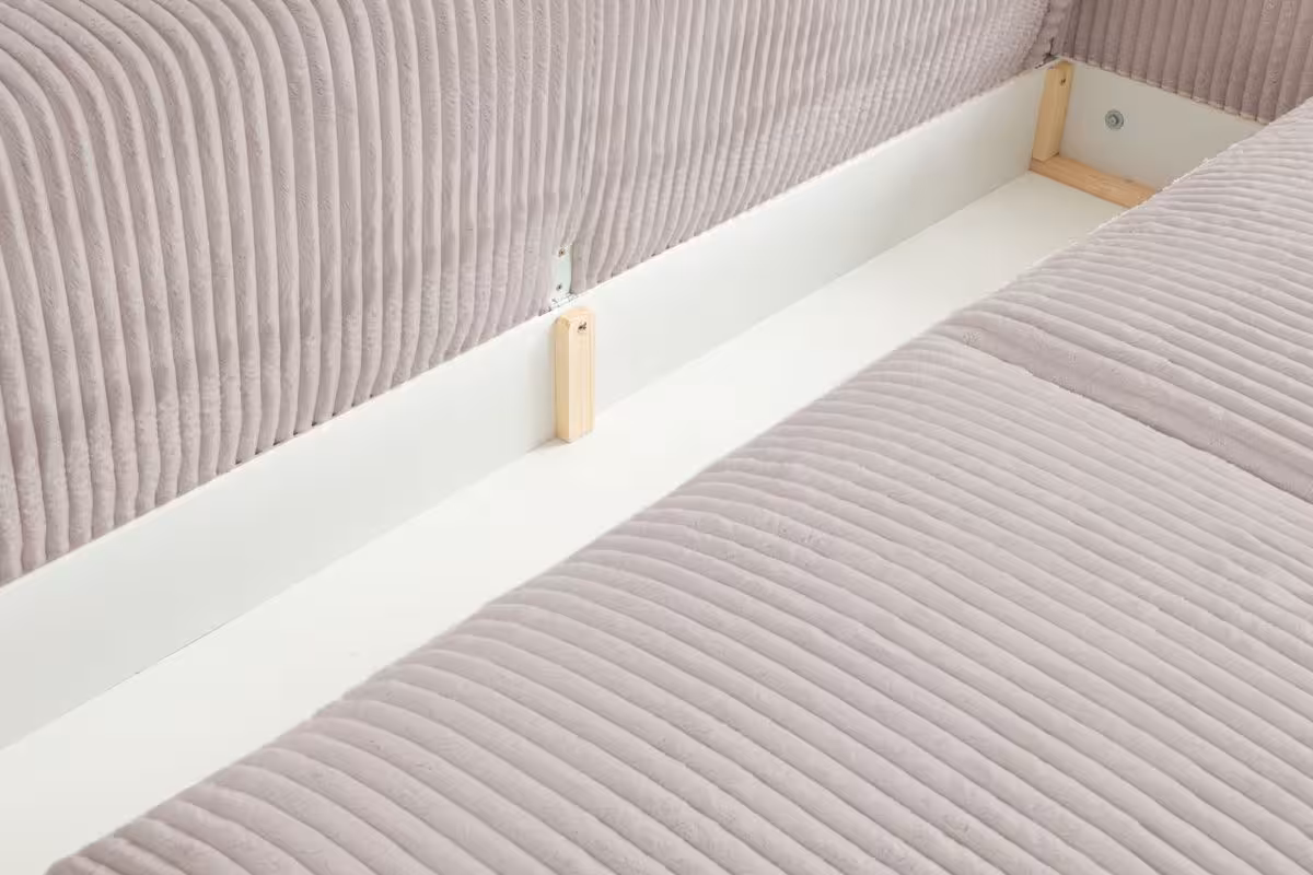 Funkcją spania jest jednym z głównych atutów sofy Espania. To rozwiązanie idealne dla tych, którzy chcą korzystać z przestrzeni w maksymalnie efektywny sposób. Gdy tylko zechcesz, możesz zamienić tę urokliwą sofę w wygodne łóżko. To znakomite rozwiązanie dla gości lub w sytuacjach, gdy potrzebujesz dodatkowego miejsca do spania. Dodatkowy plus? Pojemnik na pościel, który znajduje się pod siedziskiem sofy. To sprytne rozwiązanie, które pozwala na przechowywanie pościeli czy kołder bez zajmowania dodatkowej przestrzeni w szafie.