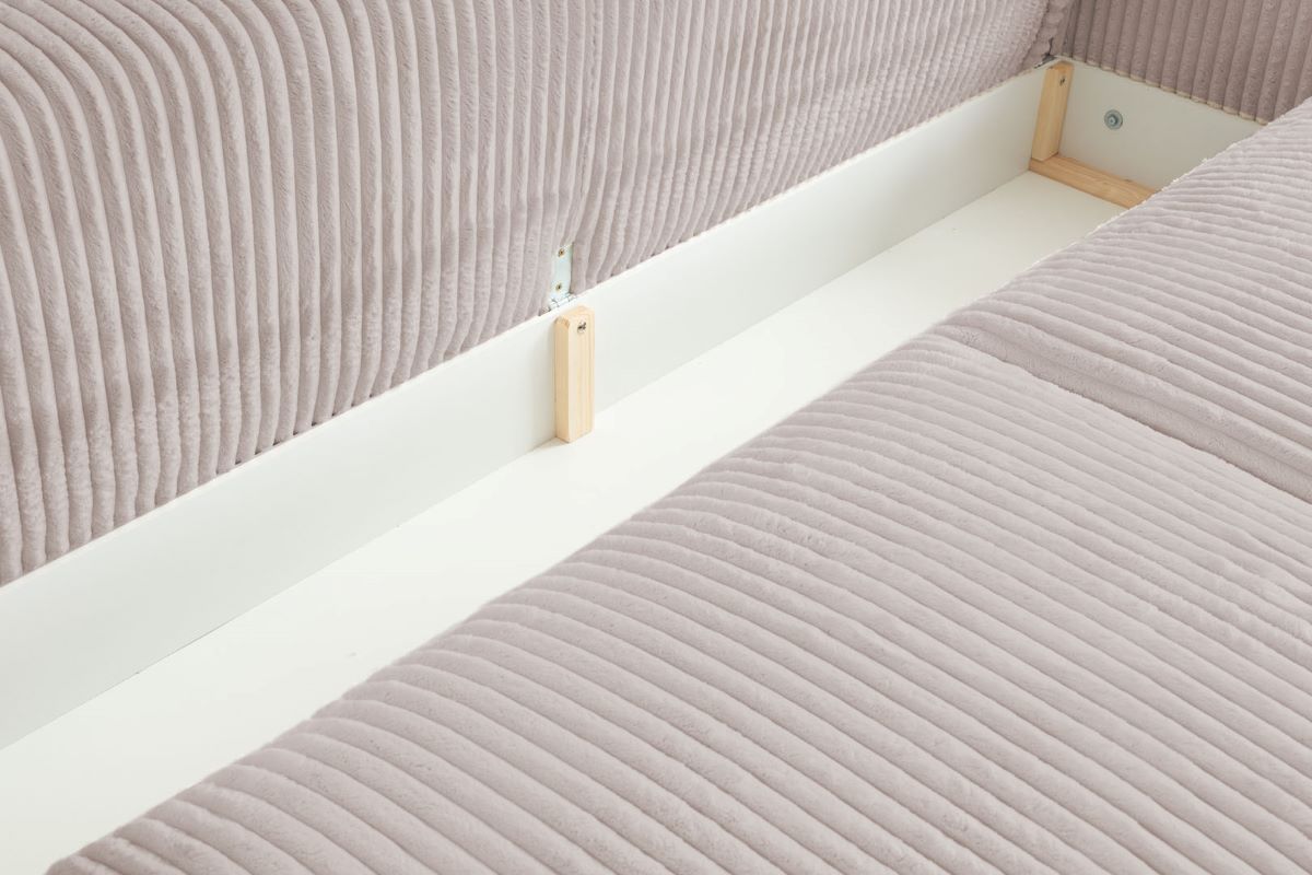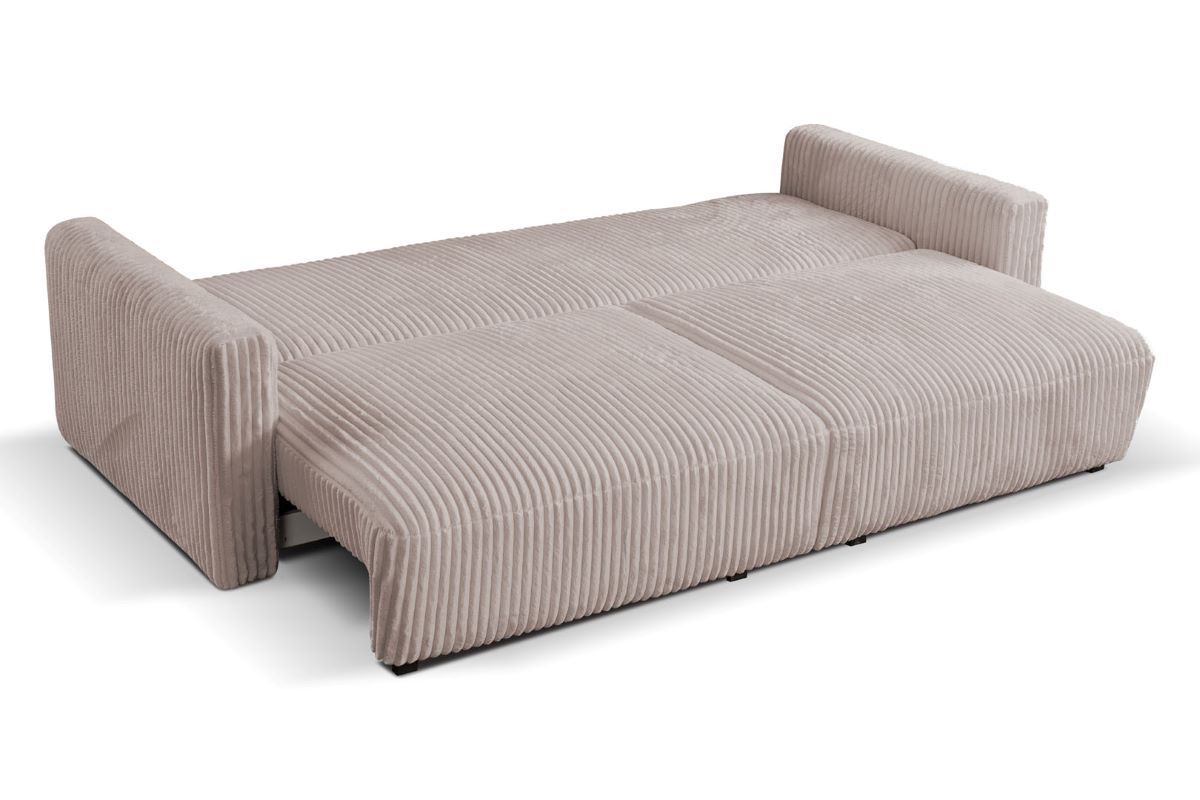 Funkcją spania jest jednym z głównych atutów sofy Espania. To rozwiązanie idealne dla tych, którzy chcą korzystać z przestrzeni w maksymalnie efektywny sposób. Gdy tylko zechcesz, możesz zamienić tę urokliwą sofę w wygodne łóżko. To znakomite rozwiązanie dla gości lub w sytuacjach, gdy potrzebujesz dodatkowego miejsca do spania. Dodatkowy plus? Pojemnik na pościel, który znajduje się pod siedziskiem sofy. To sprytne rozwiązanie, które pozwala na przechowywanie pościeli czy kołder bez zajmowania dodatkowej przestrzeni w szafie.
