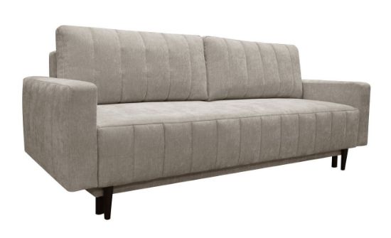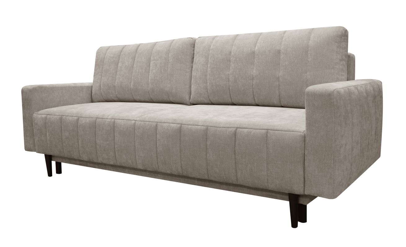 Tapicerka wykonana z tkaniny Vibe w kolorze beżowym sprawia, że sofa wygląda lekko i elegancko, a jednocześnie pozostaje praktyczna w codziennym użytkowaniu. Neutralny odcień nie przytłacza wnętrza, dlatego sofa może być centralnym elementem aranżacji salonu, pokoju dziennego lub mieszkania w bloku o mniejszym metrażu.