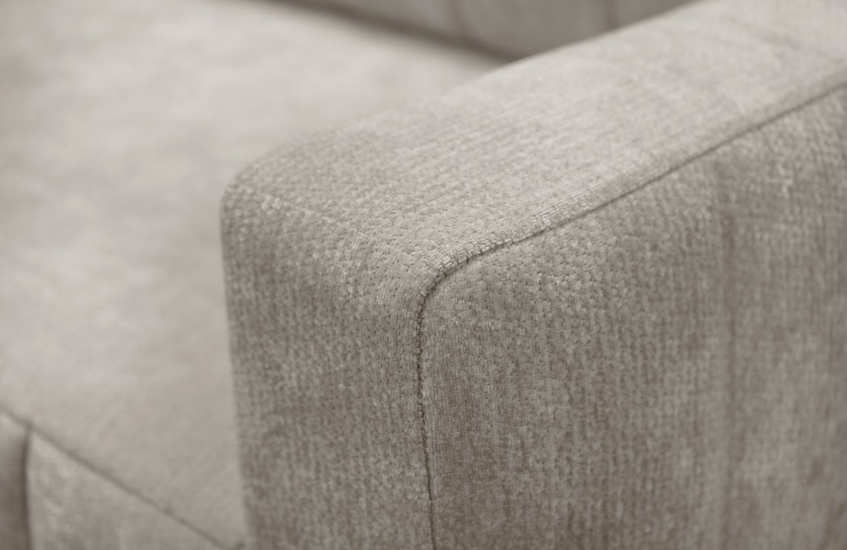 Tkanina jest przyjemna w dotyku, dzięki czemu sofa sprawdza się nie tylko wizualnie, ale także podczas codziennego użytkowania. Materiał dobrze prezentuje się zarówno w dużych salonach, jak i w mniejszych pomieszczeniach, gdzie zbyt ciemne meble mogłyby optycznie zmniejszyć przestrzeń.
