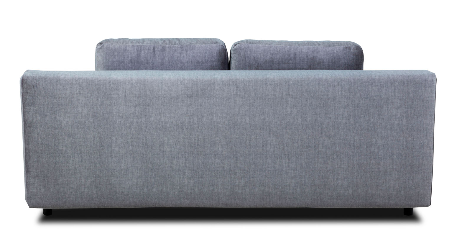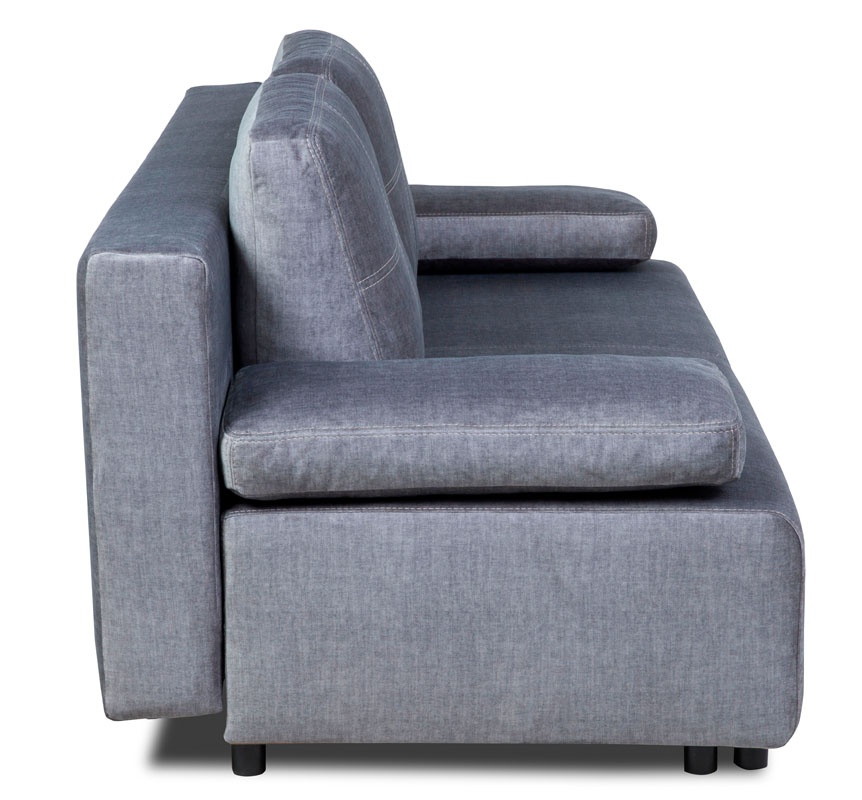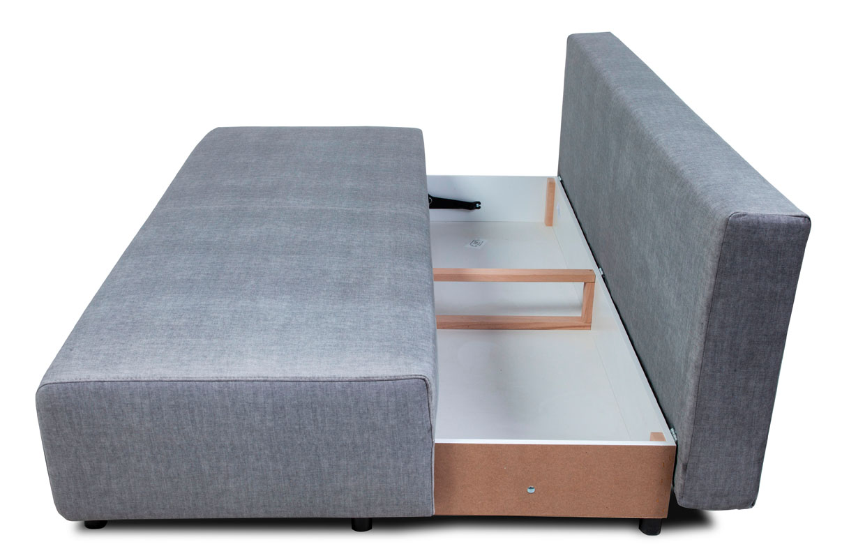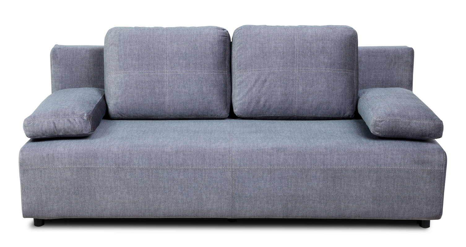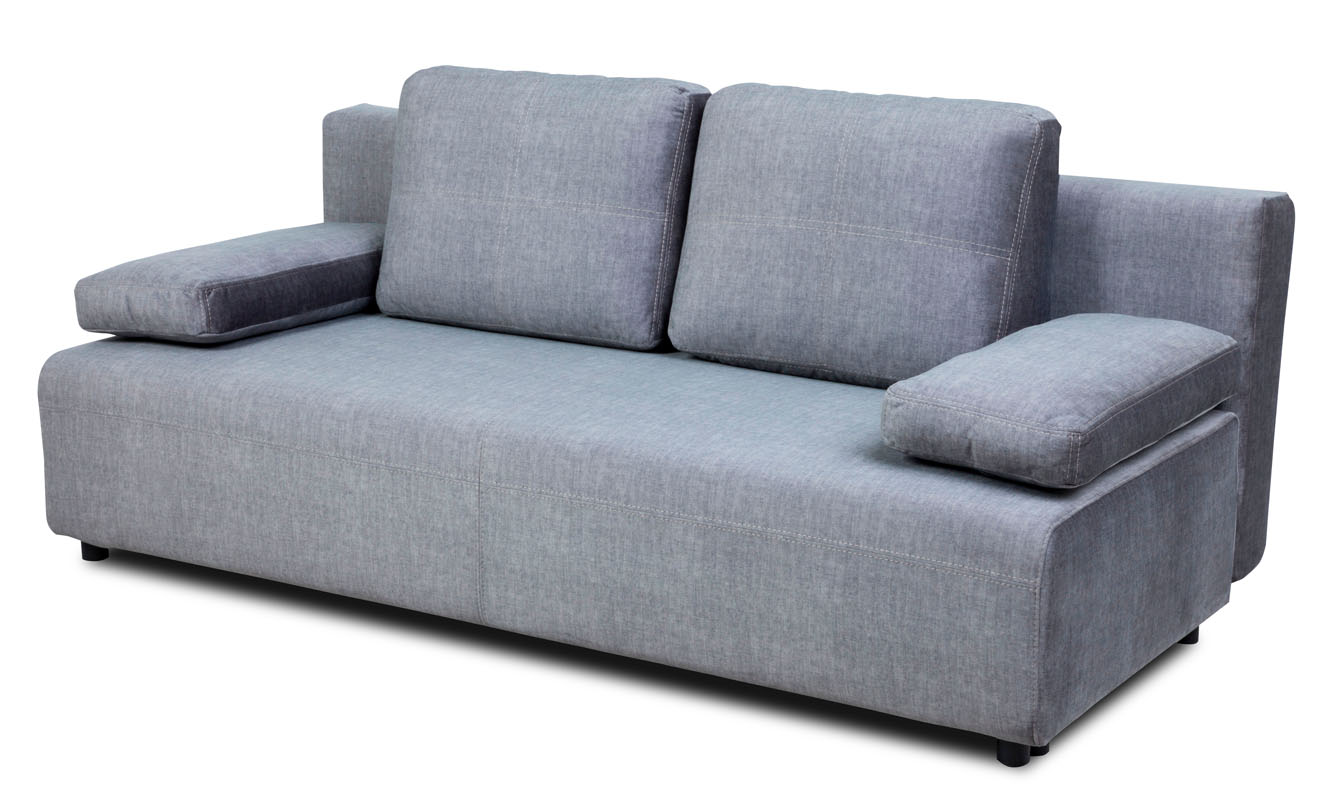 Sofa Hato w kolorze popielatym to mebel wypoczynkowy z funkcją spania, pojemnikiem na pościel oraz automatem wspomagającym rozkładanie. W komplecie sofy są 2 poduszki oparciowe i 2 poduszki boczne. Sofa wykonana w tkaninie Vogue 15. Jako element dekoracyjny zostały zastosowane ozdobne przeszycia na siedzisku, poduszkach oparciowych oraz bocznych. W siedzisku mebla zastosowano sprężyny faliste, a w oparciu sprężyny bonell, co znacznie podnosi komfort wypoczynku. Sposób rozkładania to popularny system DL. Po rozłożeniu sofy otrzymujemy powierzchnię spania o wymiarach 147x200 cm. W sofie zastosowano nóżki z tworzywa sztucznego.
