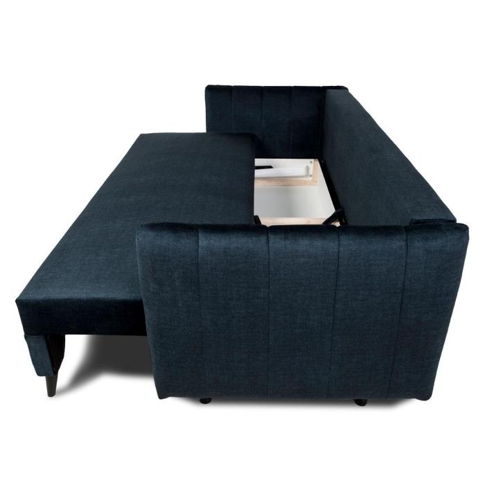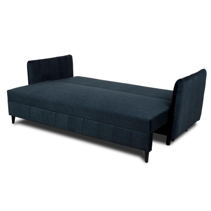 Rozkładana kanapa Isona posiada funkcję spania o wymiarach 145x200 cm, która zapewni dodatkową przestrzeń w salonie bądź w innym pomieszczeniu w domu. Dodatkowe miejsce na przechowanie pościeli, koca, poduszek lub innych przedmiotów zapewnia funkcjonalny pojemnik na pościel.