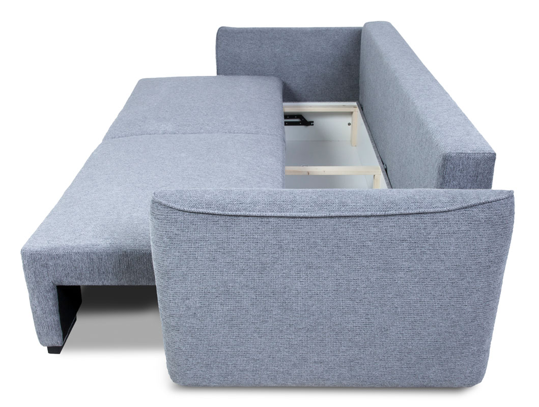 Jedną z kluczowych cech sofy Lotta jest jej mechanizm rozkładania, który umożliwia łatwe i szybkie przekształcenie mebla w wygodne łóżko. Dodatkowo, sofa posiada praktyczny pojemnik na pościel, co pozwala na efektywne przechowywanie pościeli i dodatkowych akcesoriów, dzięki czemu można utrzymać porządek w pomieszczeniu.