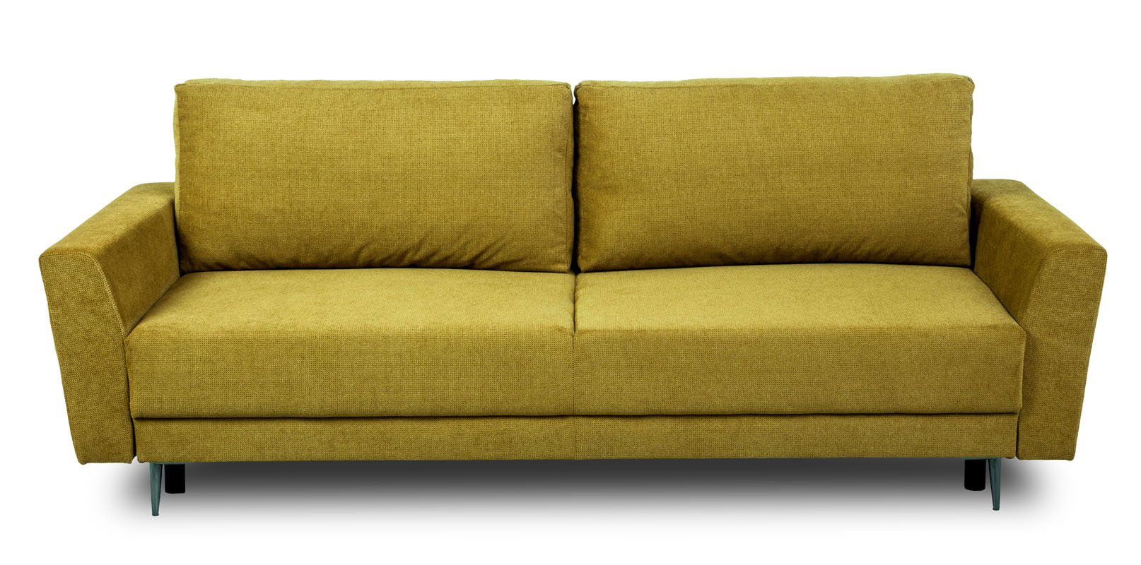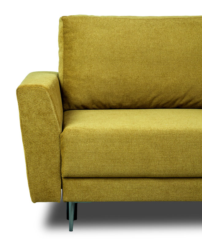 Sofa Luna została wykonana z wytrzymałej tkaniny Crown o intensywnym, żółtym kolorze, który dodaje wnętrzu energii i charakteru. W komplecie znajdują się dwie poduszki oparciowe, które nie tylko zwiększają komfort użytkowania, ale także pełnią funkcję dekoracyjną, nadając sofie lekkości i stylowego wykończenia.
