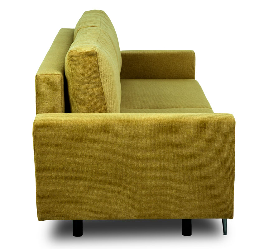 Sofa Luna została wyposażona w nóżki w kolorze czarnym, które nie tylko pełnią funkcję stabilizującą, ale także stanowią eleganckie wykończenie całej konstrukcji. Czarny kontrast doskonale współgra z intensywnym żółtym kolorem tapicerki, nadając sofie nowoczesny i stylowy charakter.