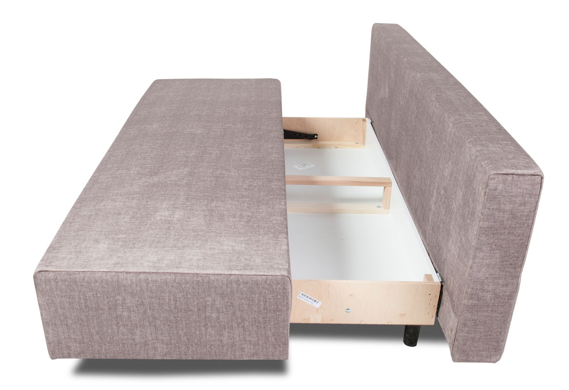 Sofa Megi to mebel wypoczynkowy z funkcją spania, pojemnikiem na pościel oraz automatem wspomagającym rozkładanie. W komplecie sofy są dwie poduszki
