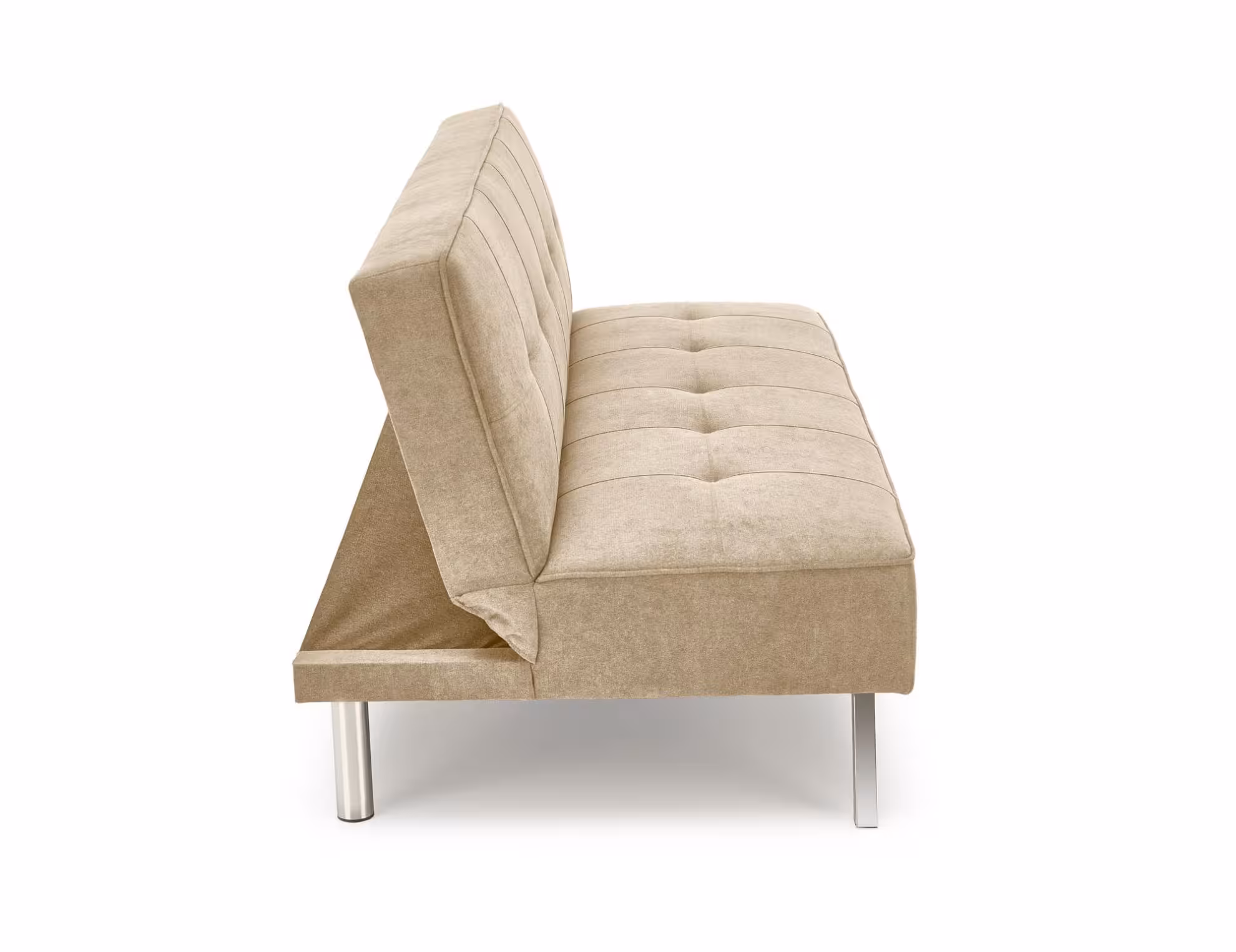 Materiały najwyższej jakości zostały użyte w produkcji tej sofy, z tkaniną zapewniającą nie tylko miękkość i przyjemność dotyku, ale także trwałość i łatwość w utrzymaniu czystości. Dodatkowo, elementy wykonane ze stali chromowanej nie tylko nadają sofie solidnej konstrukcji, ale również dodają subtelnej elegancji i nowoczesnego wyrazu.