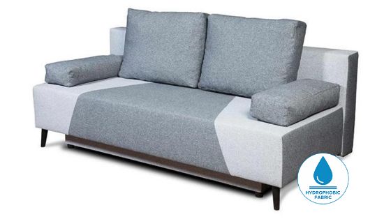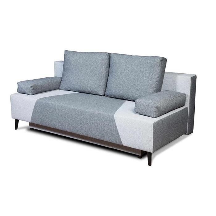 Trzyosobowa sofa rozkładana z funkcją spania, pojemnikiem na pościel oraz mechanizmem ułatwiającym rozkładanie. W komplecie dwie poduszki oparciowe i poduszki boczne. Sofa wykonana w tkaninie Solid w kolorze popielatym. Jest to tkanina hydrofobowa, która ogranicza wchłanianie płynów. W siedzisku oraz oparciu mebla zastosowano sprężyny bonell oraz piankę poliuretanową. W sofie zastosowano nóżki w kolorze czarnym wykonane z drewna ora tworzywa. Jest wykonana z dużą precyzją co zapewnia estetyczny, stylowy wygląd.
